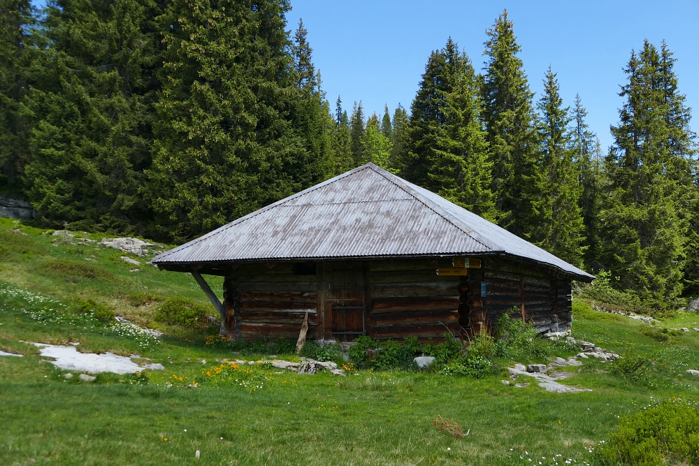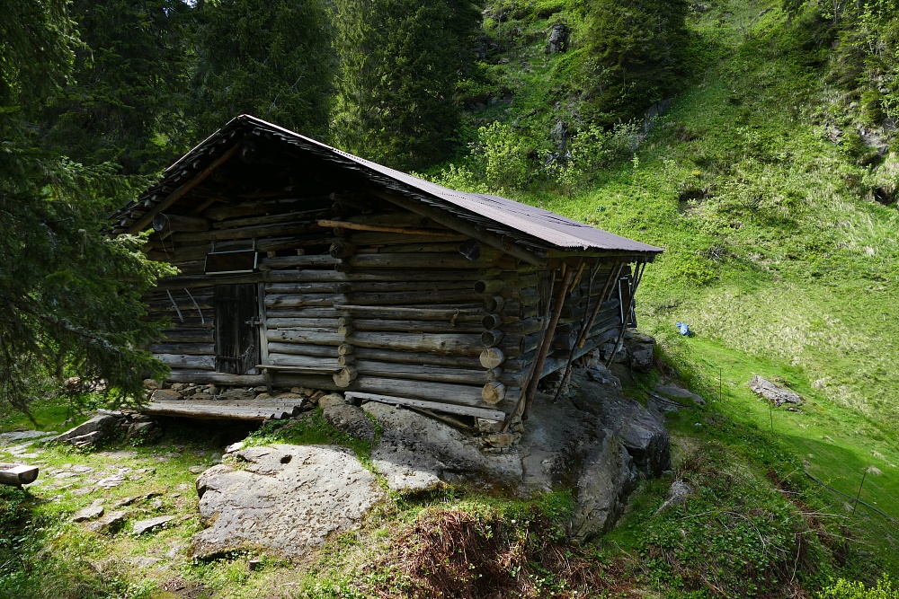 Bald darauf erreiche ich eine Hütte, bei der sogar auf den Anstiegsweg hingewiesen wird. Allerdings handelt es sich nicht um einen offiziellen vom Alpenverein unterhaltenen Wanderweg.