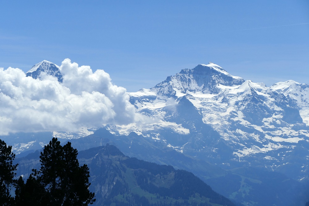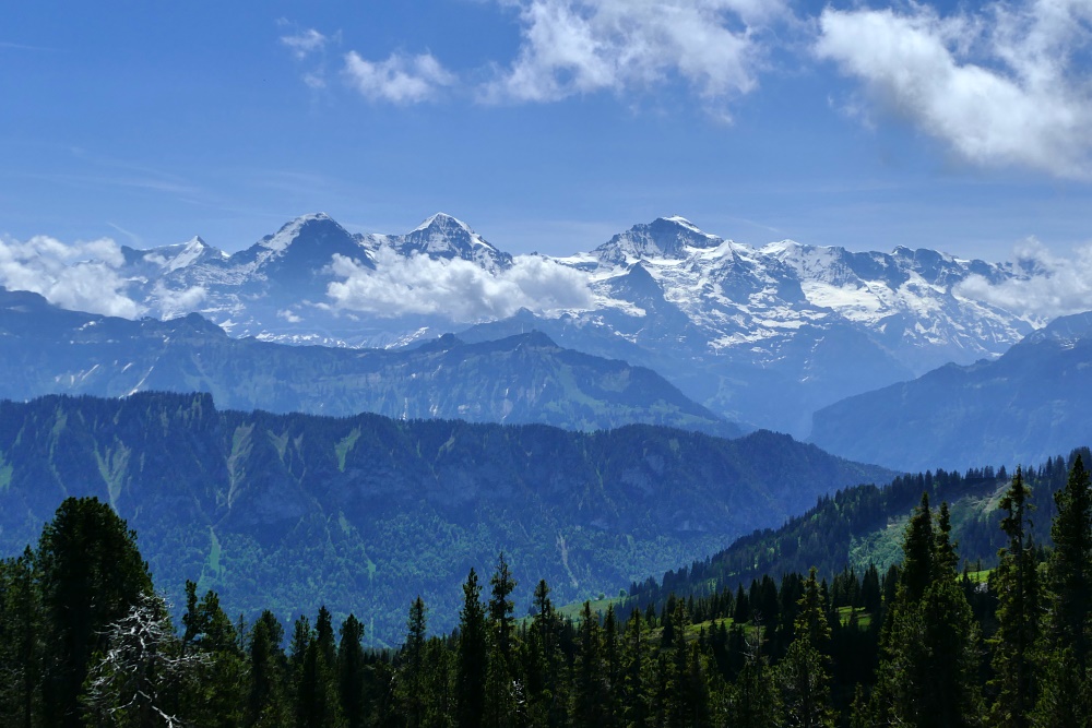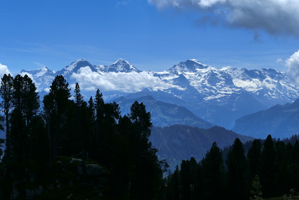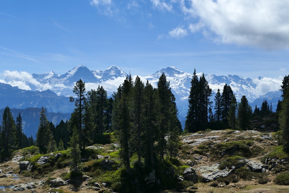 Wir nähern uns langsam der Baumgrenze, so dass sich die Sicht auf das Berner Dreigestirn deutlich verbessert.