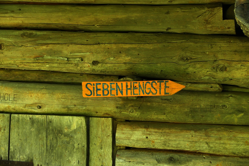 Hier geht es hoch zu den Gipfeln der Sieben Hengste hoch. Ich bin etwas beruhigt, als ich ein Wandererpärchen durch die Grasflanke herunterkommen sehe. Ganz so verkehrt kann also meine Route nicht sein. Doch bald verliere ich sie aus den Augen. Wahrscheinlich sind sie über Ramsgrind abgestiegen.