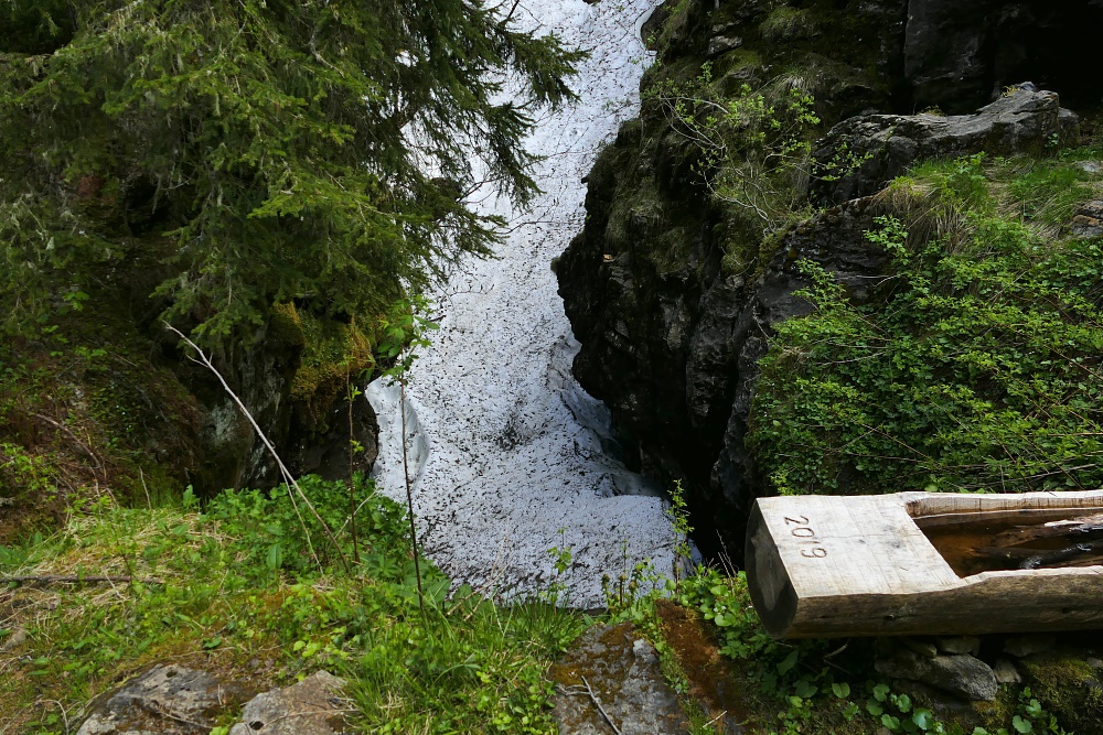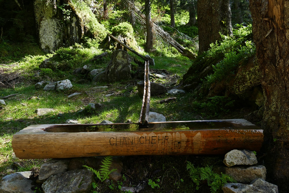 Wassertrog bei der Almhütte Schluchhole. Hier vereinigt sich auch der Abstiegsweg über Ramsgrind mit "meinem" Weg.