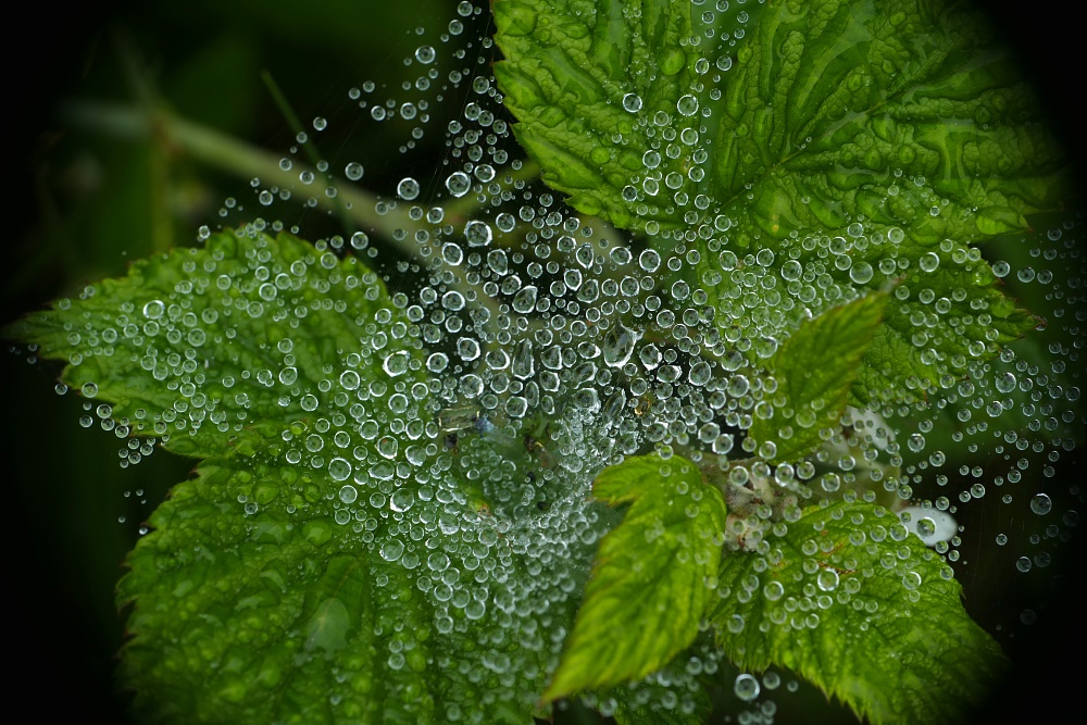 Wassertröpfchen im Spinnennetz