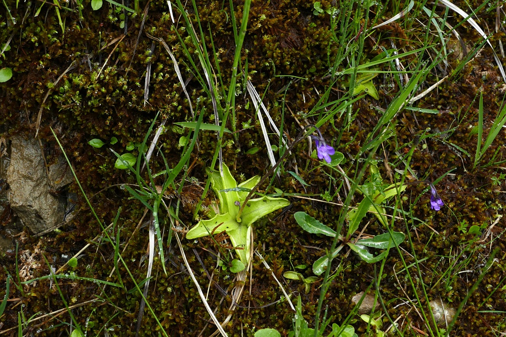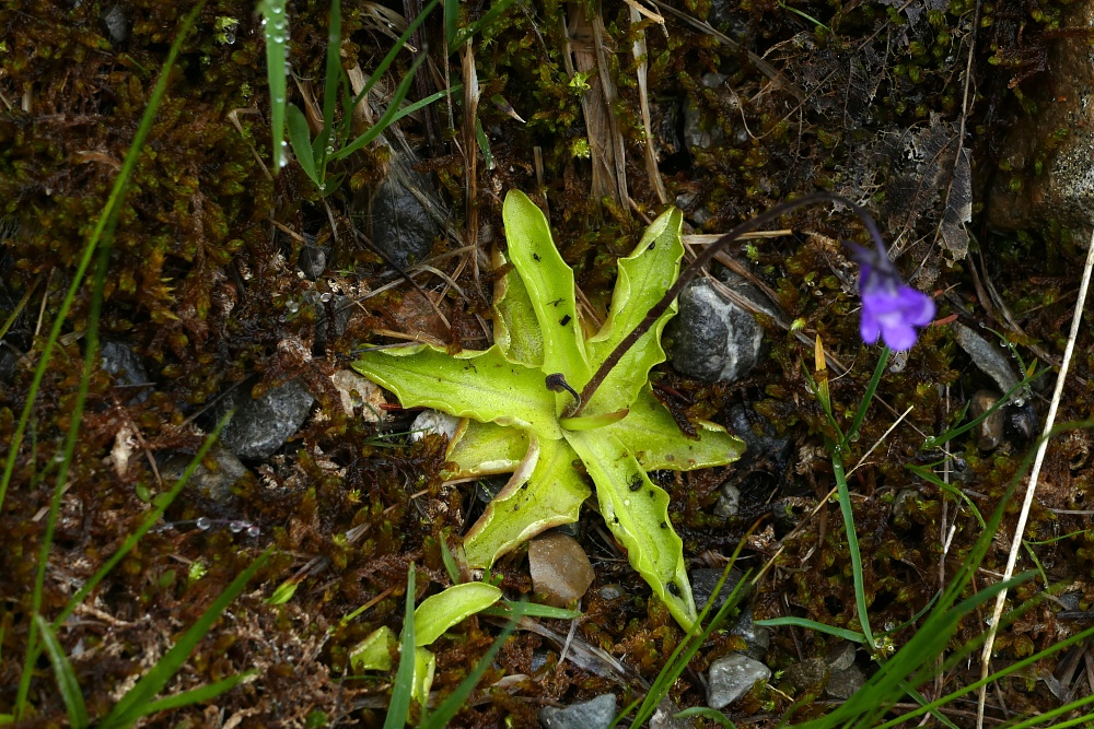 Hier wächst und blüht das gemeine Fettkraut. Gestern war mir ausschließlich das weißblühende Alpen-Fettkraut begegnet.