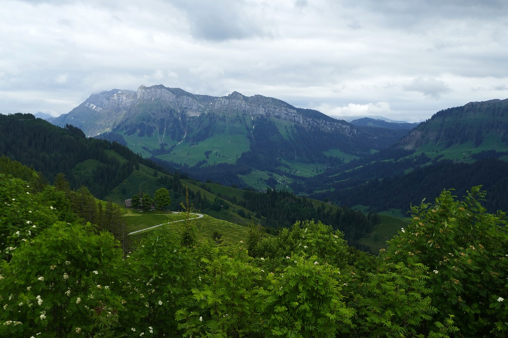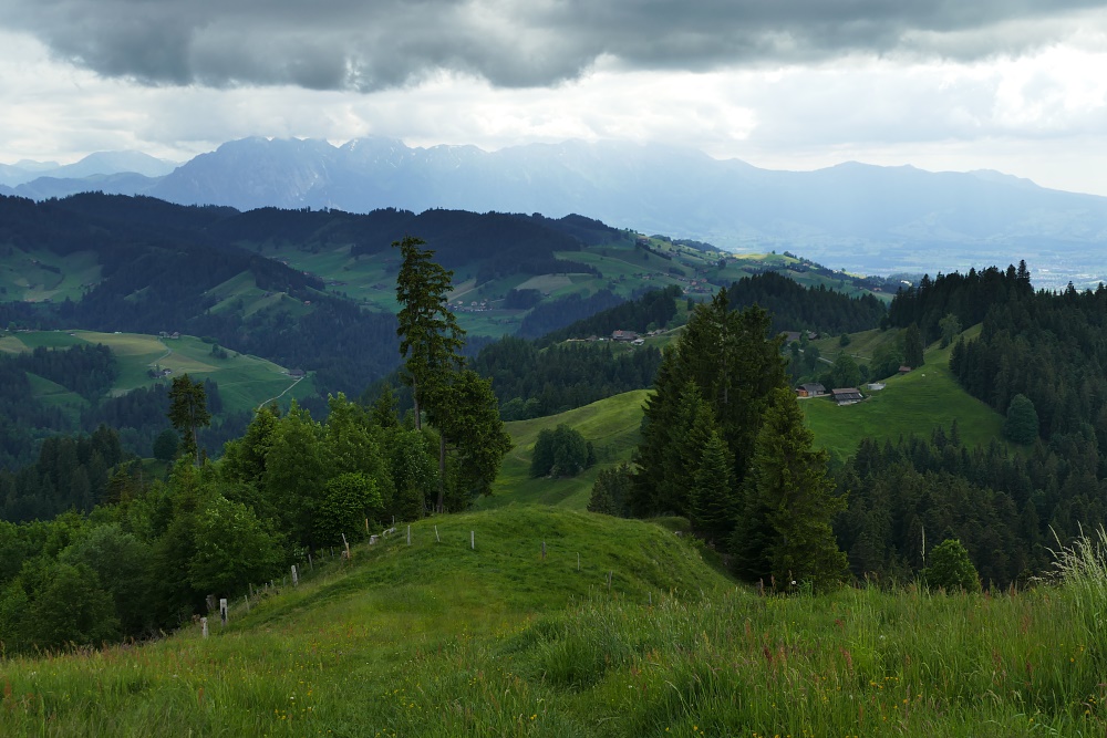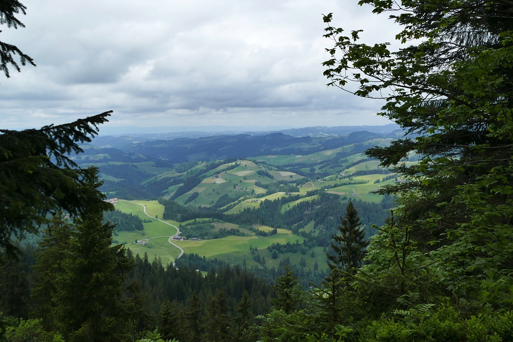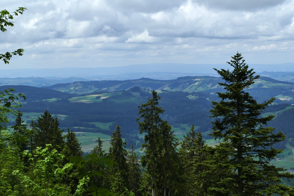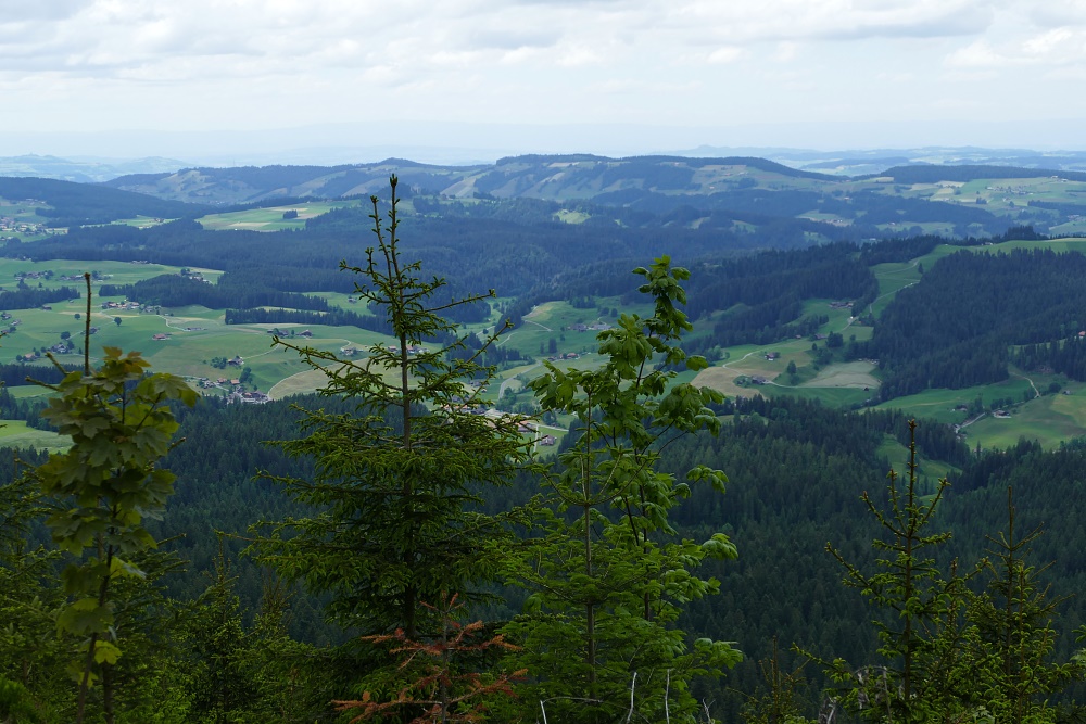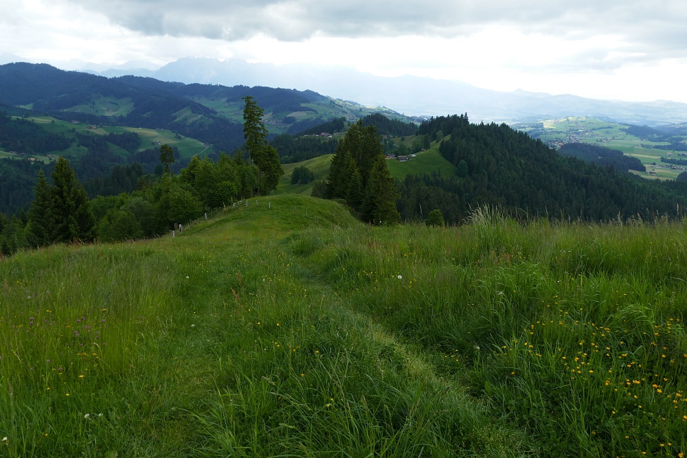 Bei der Verzweigung zum Bürkelihubel (Punkt 1429) kann man erstmals einen Blick Richtung Norden erhaschen.