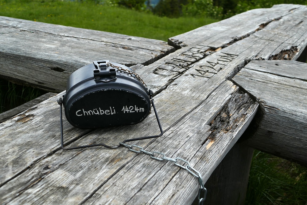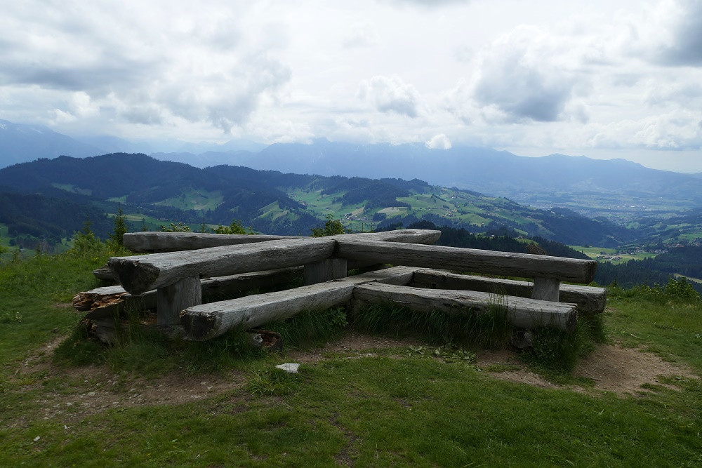 Auf dem Chnübeli lädt eine riesige kreuzförmige Sitzbank zum Verweilen und Genießen der Aussicht ein.