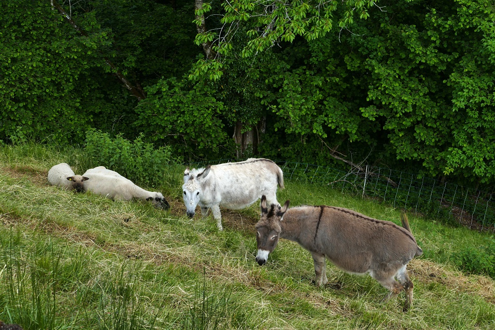 Esel leisten den Schafen Gesellschaft