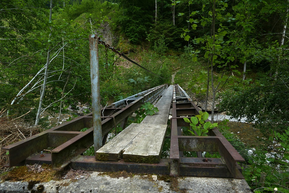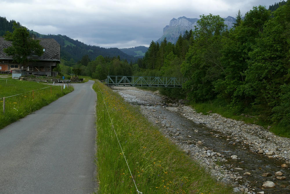 Zurück zur Geissegg geht es nun an der Emme entlang. Brücke bei Moos