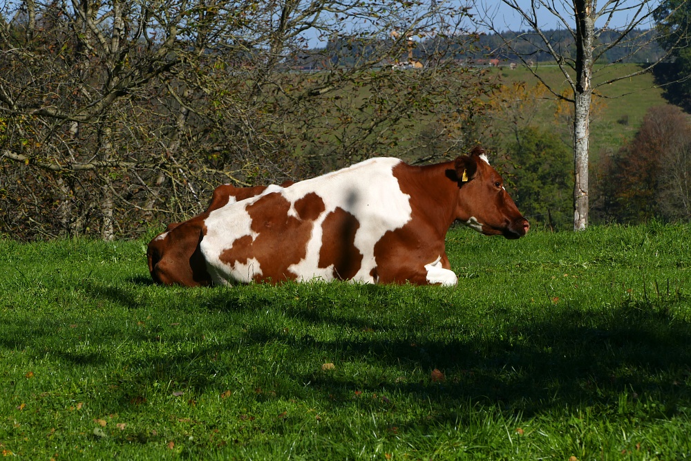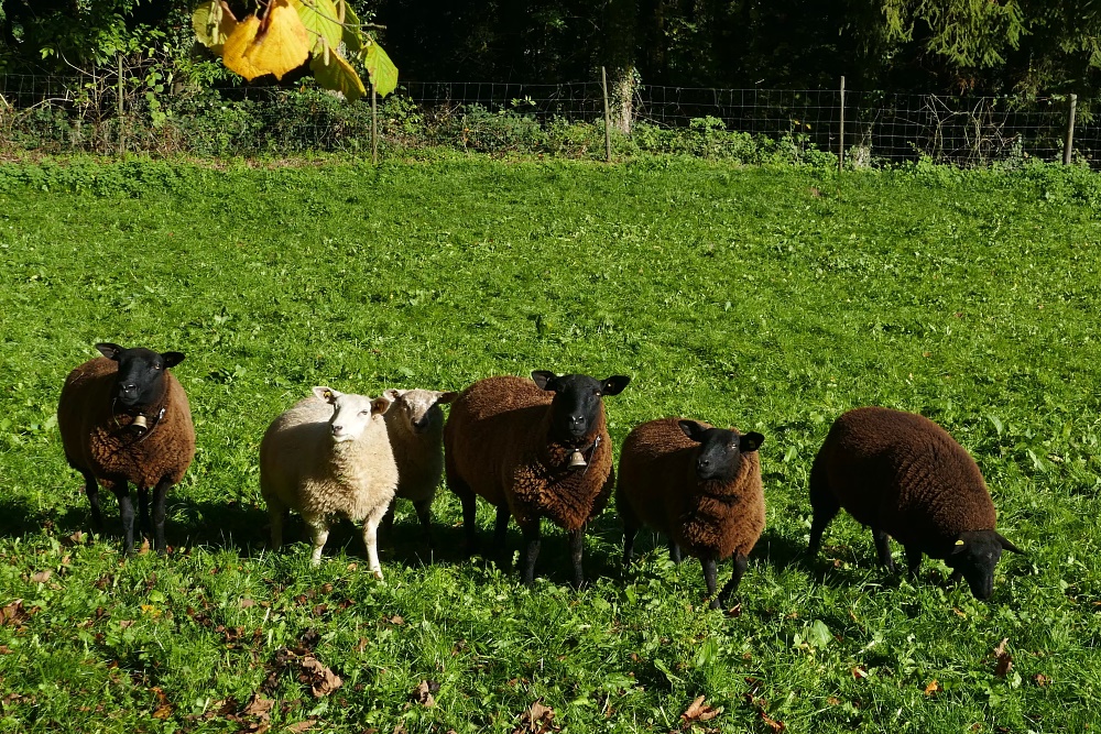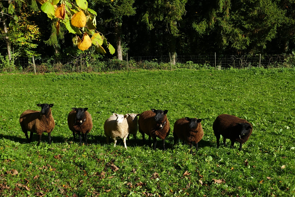 Nach einer längeren Strecke im dichten Wald in Richtung der Sitter erreichen wir wieder kurz freies Gelände, wo uns einige neugierige tierische Vierbeiner in Reih und Glied begrüßen.