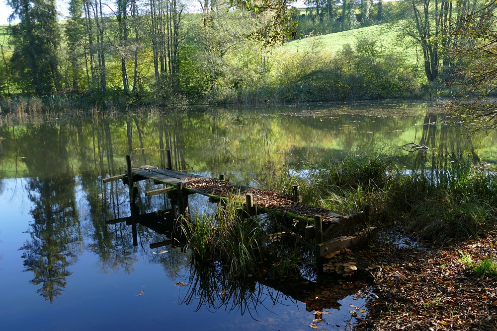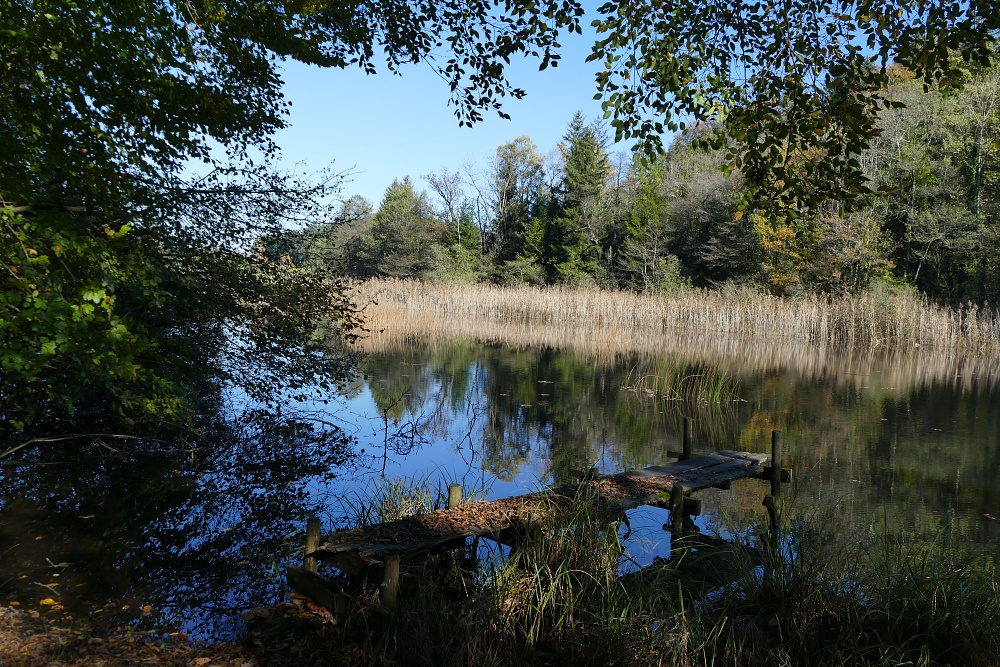 Auch hier endet der Weiher an einem Damm; direkt dahinter und einen Meter tiefer liegt der vierte der Seen, der Gwandweier.