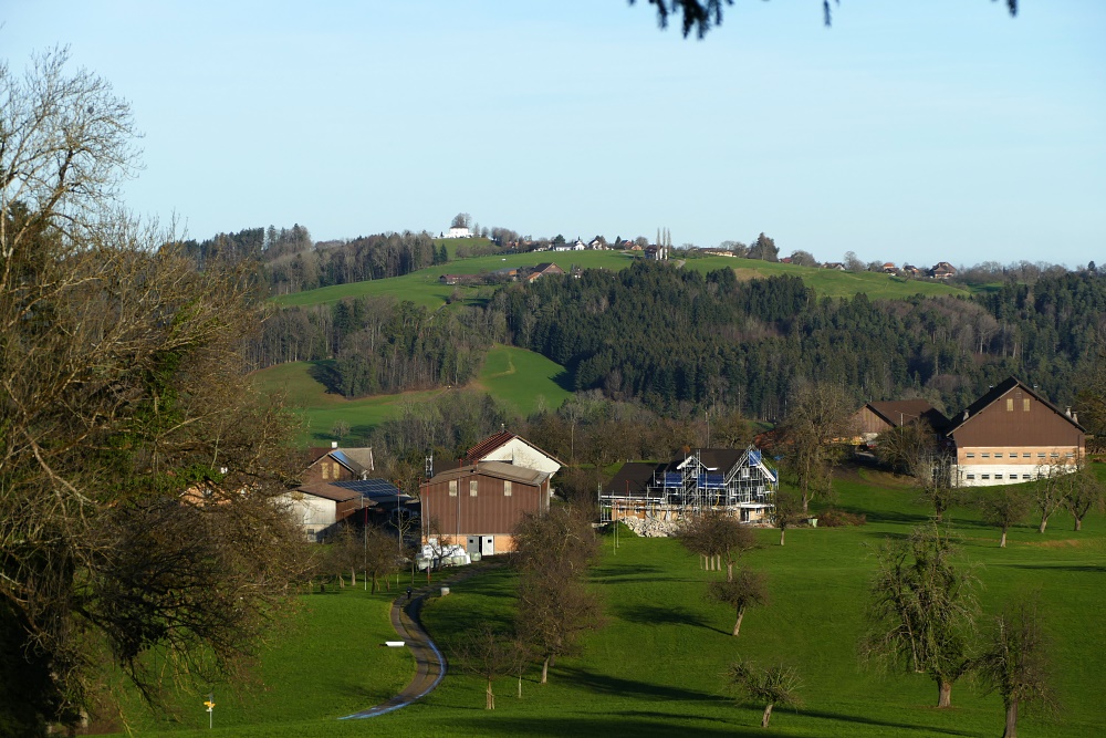 Blick nach Osten mit den Häusern von Ruedenwil