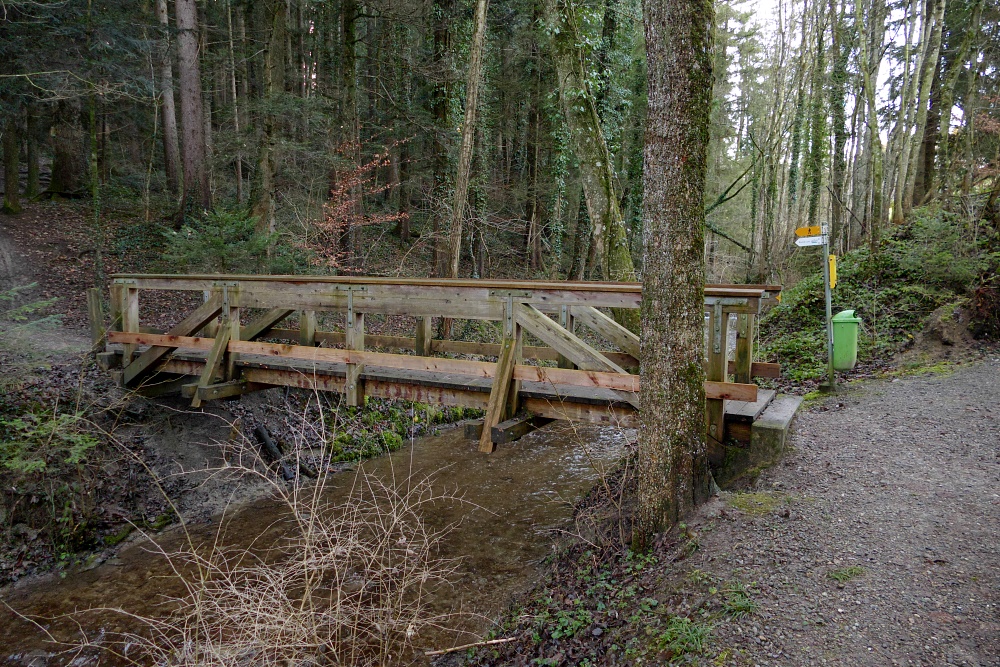 Nun geht es zum letzten Abschnitt der Wanderung: Brücke am Philosophenweg über den Dorfbach Zuzwil
