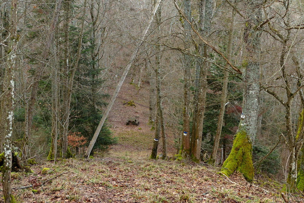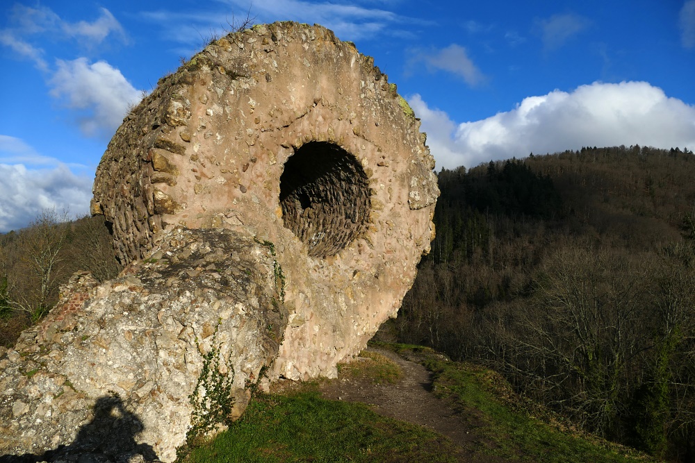 Route | Thann (340 m) → Chateau de L'Engelbourg → beim Rosenburgkopf → Col de Grumbach → Grumbachkopf → Monument Berthold → Camp Turenne → Freundstein-Kapelle → Ferme Auberge Ostein → Thann |