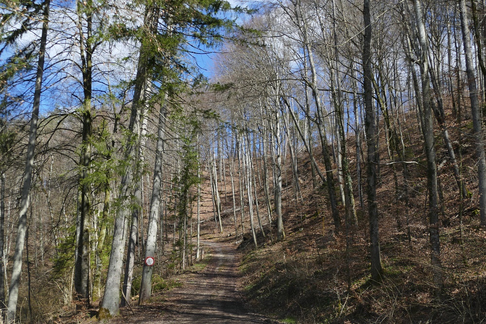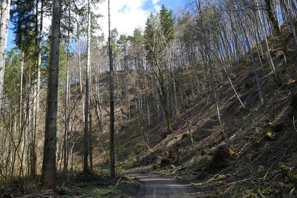 Bald darauf erreiche ich einen gangbaren Forstweg.