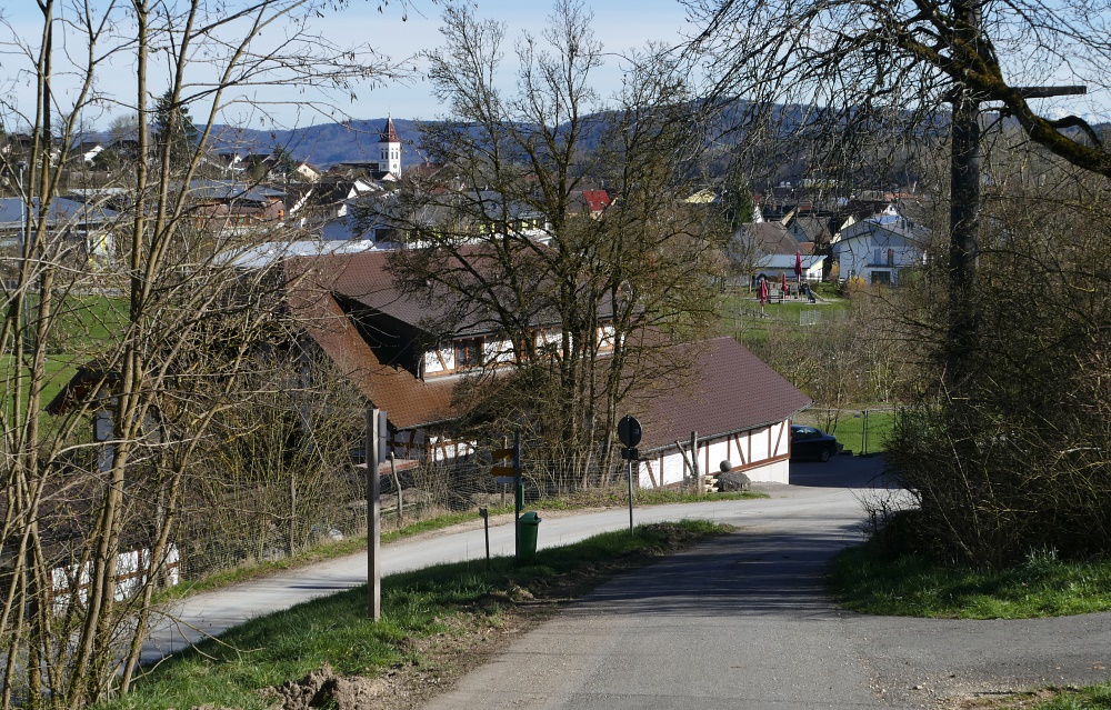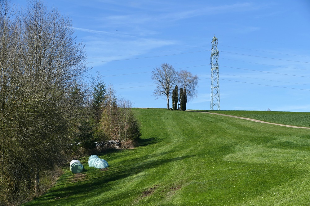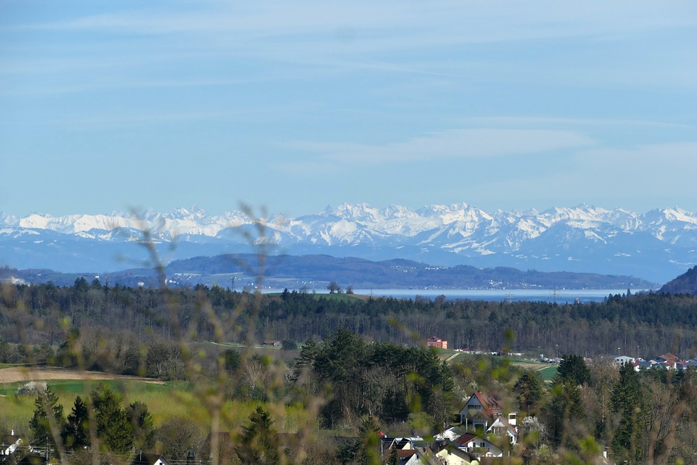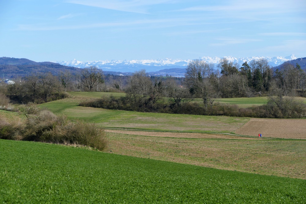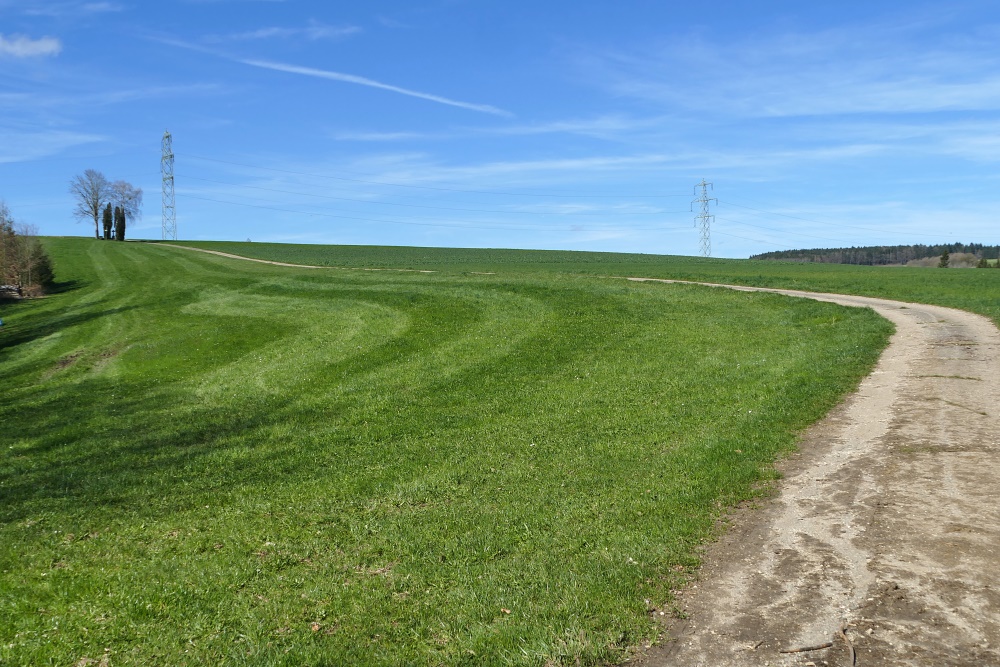 Erst vor Eigeltingen treffe ich wieder auf offenes Gelände, sogar mit Alpensicht.