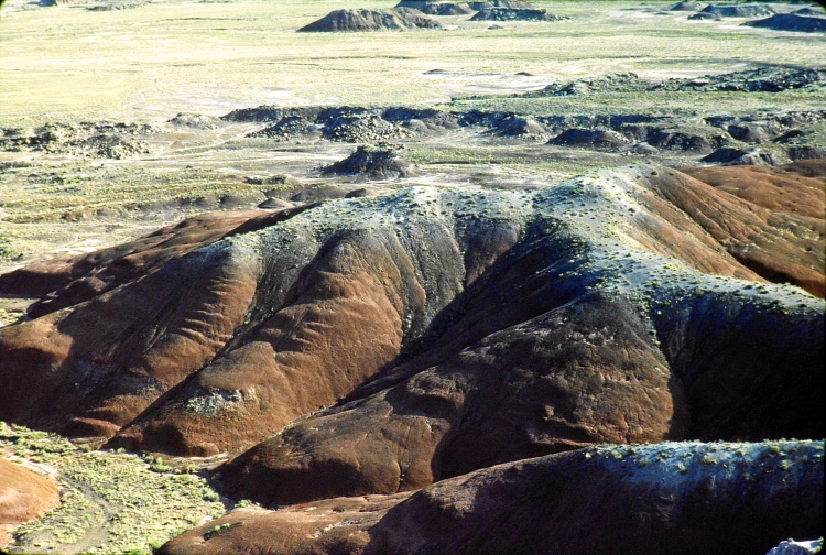 Unmengen an versteinertem Holz, von Klötzen bis zu feinen Bruchstücken, haben sich nach dem Abtragen der Schichten in den ausgewaschenen Tälern und Rinnen angesammelt. Die Anasazi nutzten die wärmeisolierenden versteinerten Baumstämme gelegentlich sogar für den Hausbau.