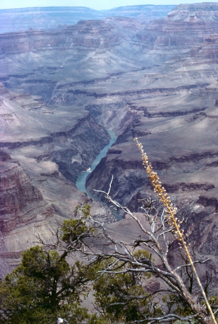Nun geht es Richtung Norden nach Cameron und von dort westlich Richtung Grand Canyon. Schon weit vor dem eigentlichen Nationalpark kündigt sich der Canyon in der topfebenen, aber vom Colorado durchfurchten Umgebung an. Das Ausmaß des Canyons ist hier aber auch noch nicht einmal im Ansatz zu erahnen.