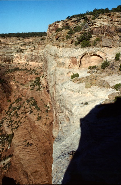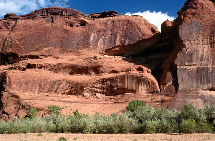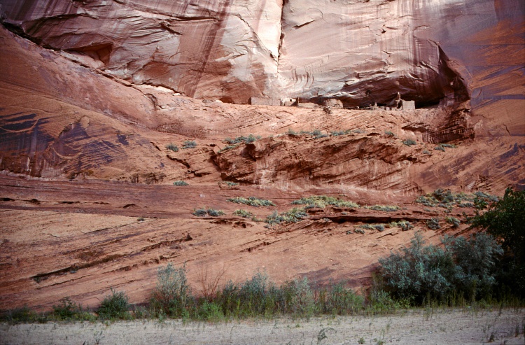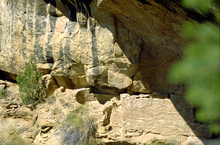 Eines der pit houses der Anasasi-Indianer, kaum sichtbar in der Felswand
