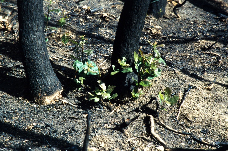 Die Eichen treiben schon nach wenigen Monaten wieder aus den unversehrt gebliebenen Wurzeln aus.