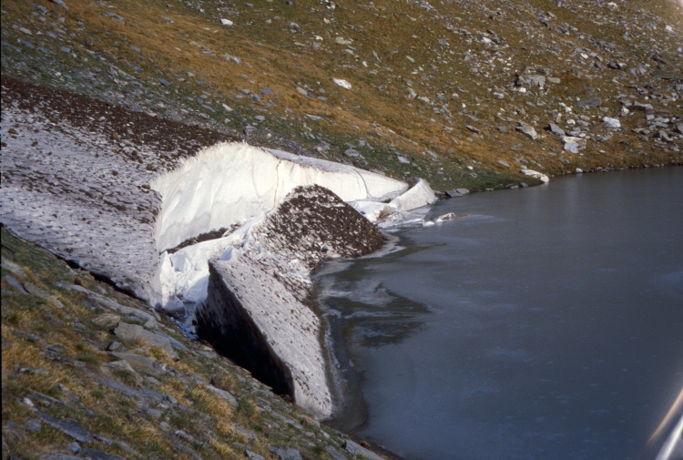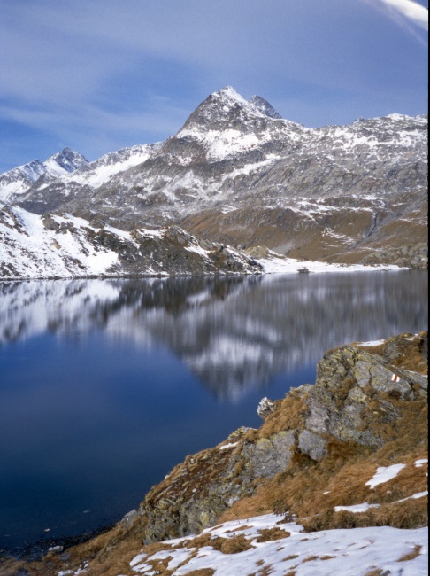 Kaum einhundert Meter höher erreiche ich auf Höhe des Lago Scuro (2451 m) die aktuelle Schneegrenze.