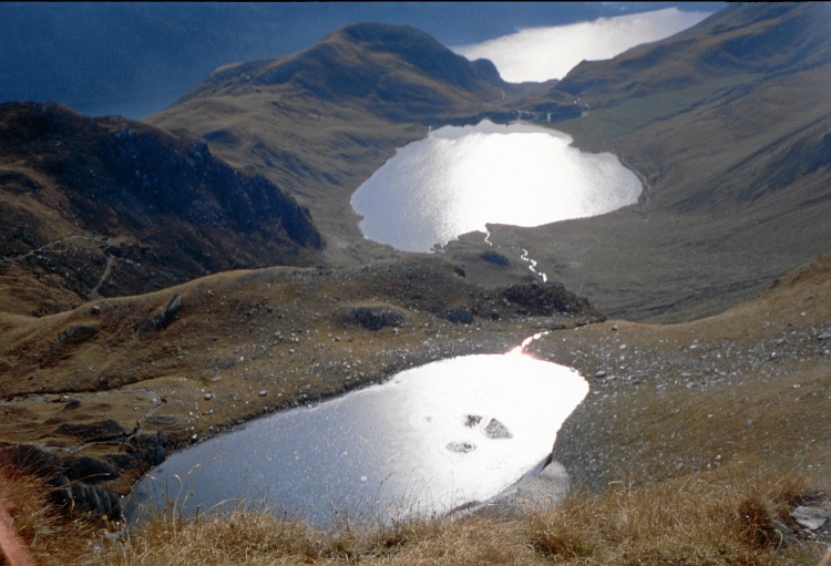 Alle drei Seen hintereinander aufgereiht: Tomsee, Ritómsee und Laghetti di Tanedo.