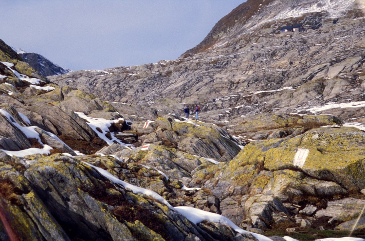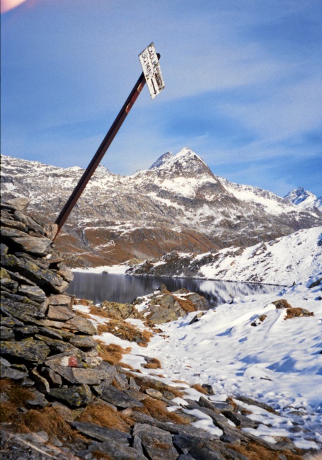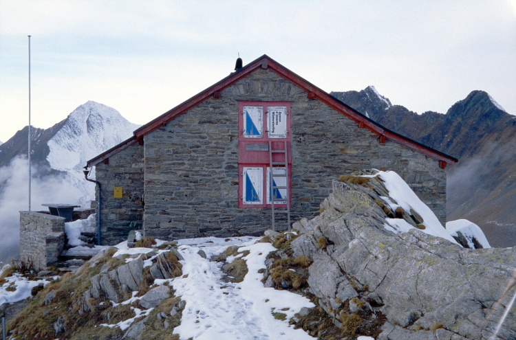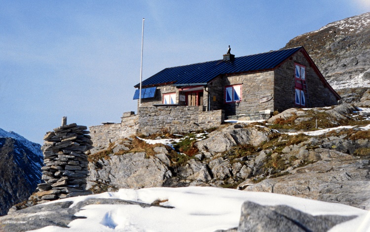 die alte Cadlimohütte. Gerne wäre ich hier oben geblieben, bin mir aber zu dieser Zeit nicht im Klaren, wie Winterlager funktionieren. Deswegen und aufgrund der tiefen Temperaturen beschließe ich, trotz der späten Tageszeit wieder zum Lukmanierpass abzusteigen.