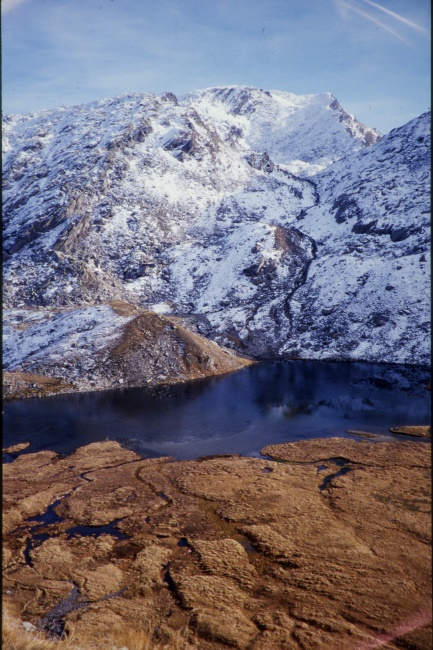 Lago Tom. Bei dem markanten Gipfel handelt es sich um den Camoghé.