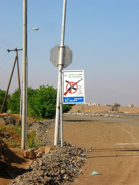 Verbotsschild am Ortsausgang von Sanaa auf der Straße Richtung Marib