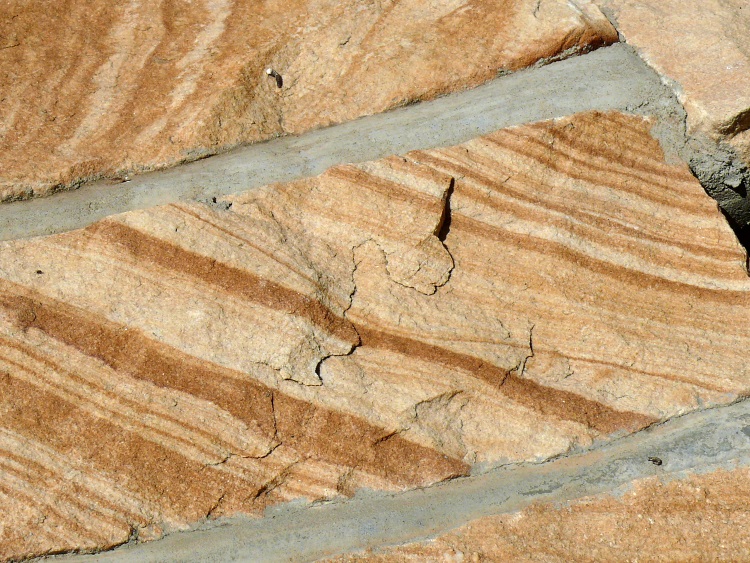 Marmorierter Sandstein ziert die Zwischenräume zwischen den Dielen.