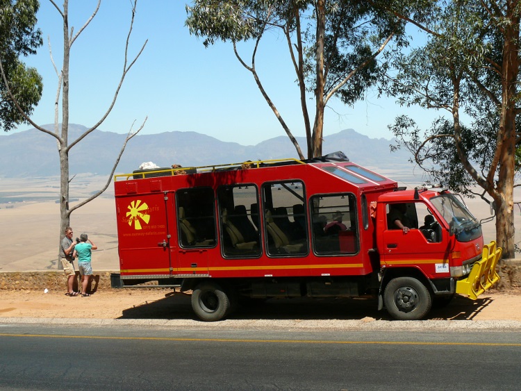 Am nächsten Tag verlassen wir Kapstadt endgültig und fahren Richtung Norden. Zunächst geht es durch die urbanen, manchmal ärmlichen Gegenden um die Metropole Kapstadt, danach duchqueren wir fruchtbare, dünn besiedelte Ebenen. Unser erstes Ziel ist das Weinland um Swartland, wo wir ein Weingut besichtigen und wo sich einige auch schon für die Reise mit dem Rebensaft eindecken.