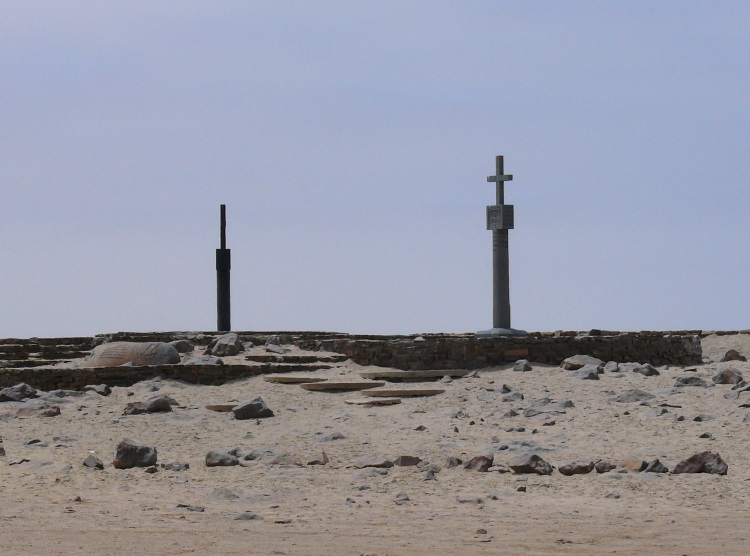 Die beiden Kreuze am Nordkap, beides nicht die Original-Kreuze. Das Original war lange Zeit in einem Museum in Berlin gelagert, wurde aber 2019 an Namibia zurückgegeben, wo der neue Aufstellungsort noch nicht abschließend geklärt ist.