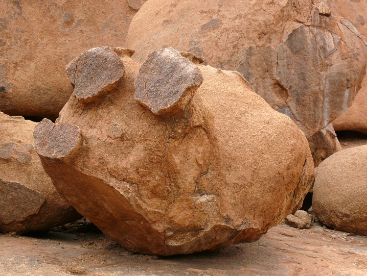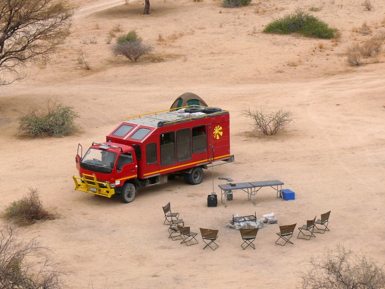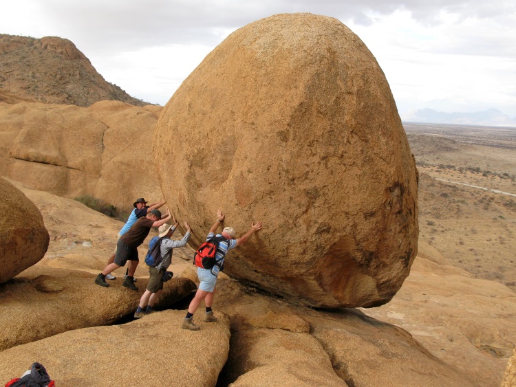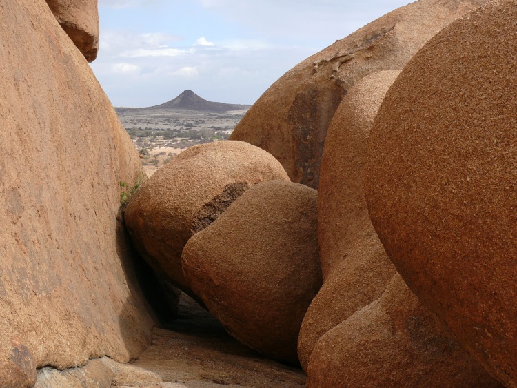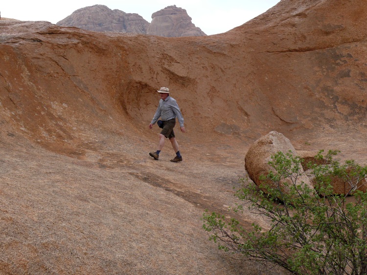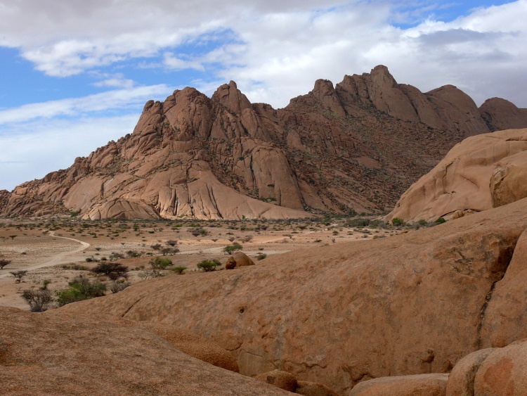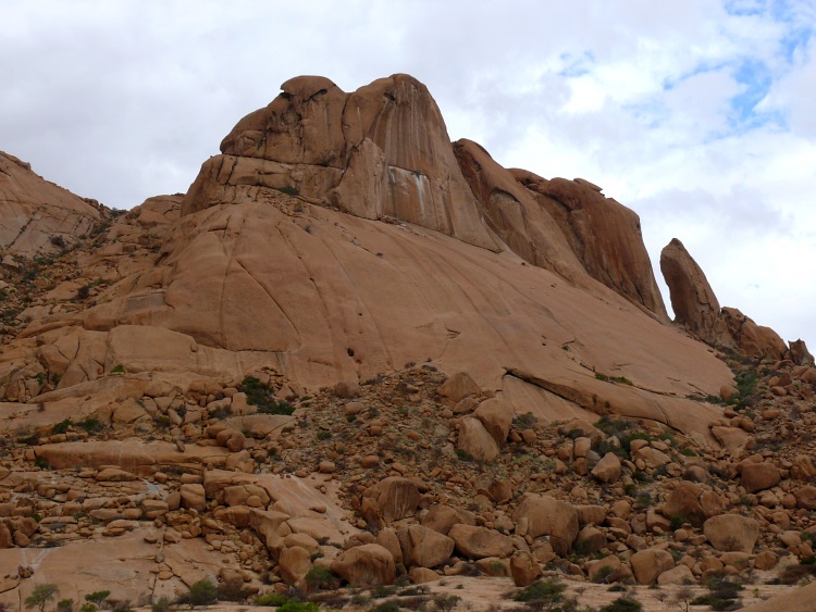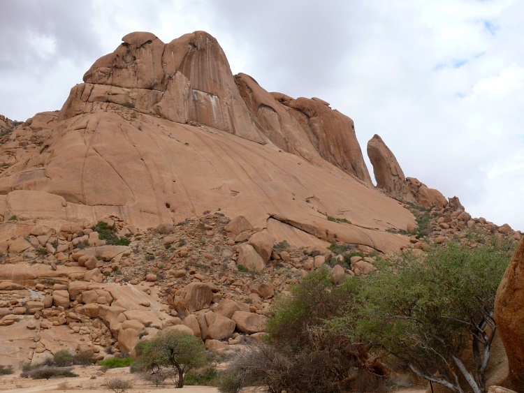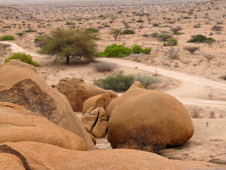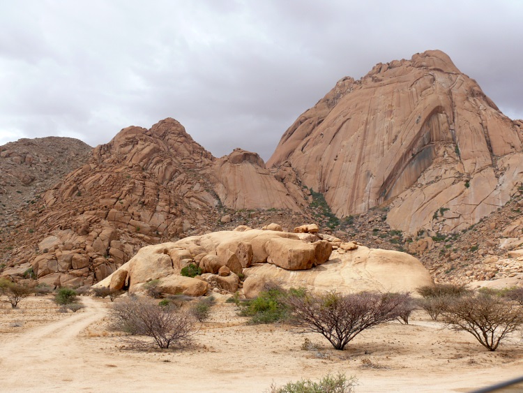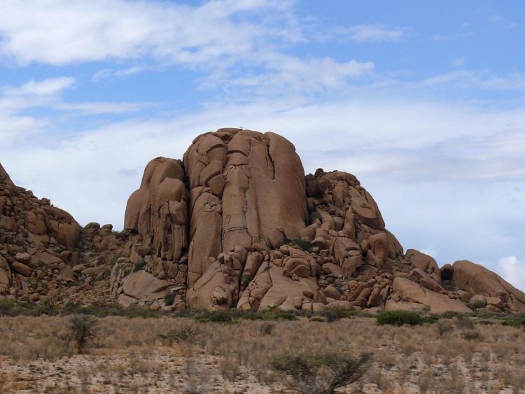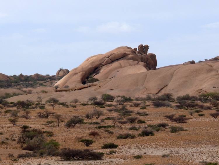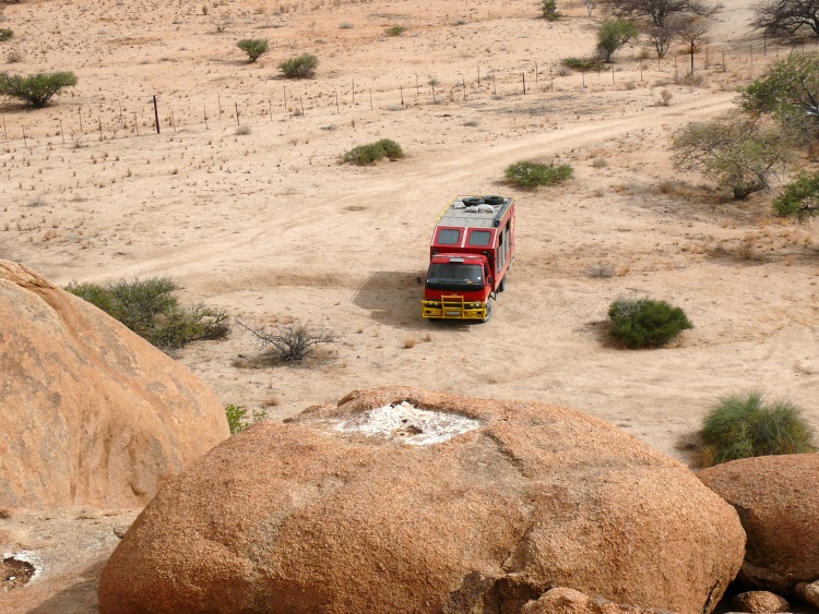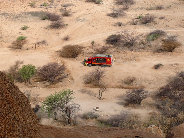 Nach der Befreiung aus unserer Misere geht es weiter zur Spitzkoppe, einem markanten Granitberg, der aus der flachen, trockenen Landschaft aufragt.