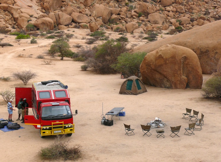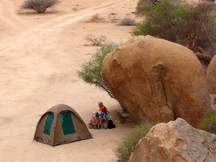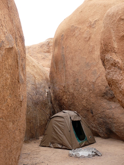 jeder sucht sich nun inmitten der Felsen ein mehr oder weniger abgeschiedenes Plätzchen für sein Zelt.