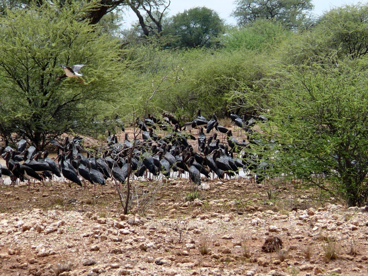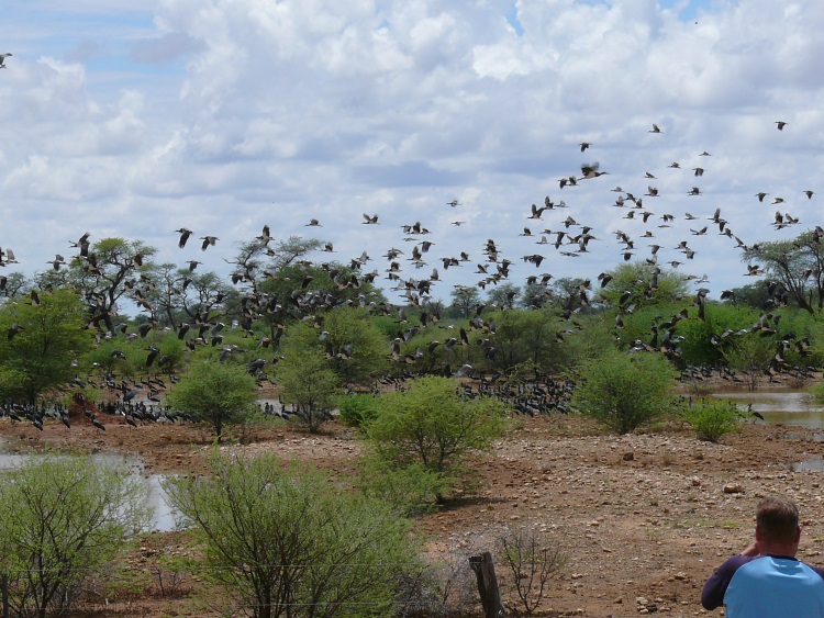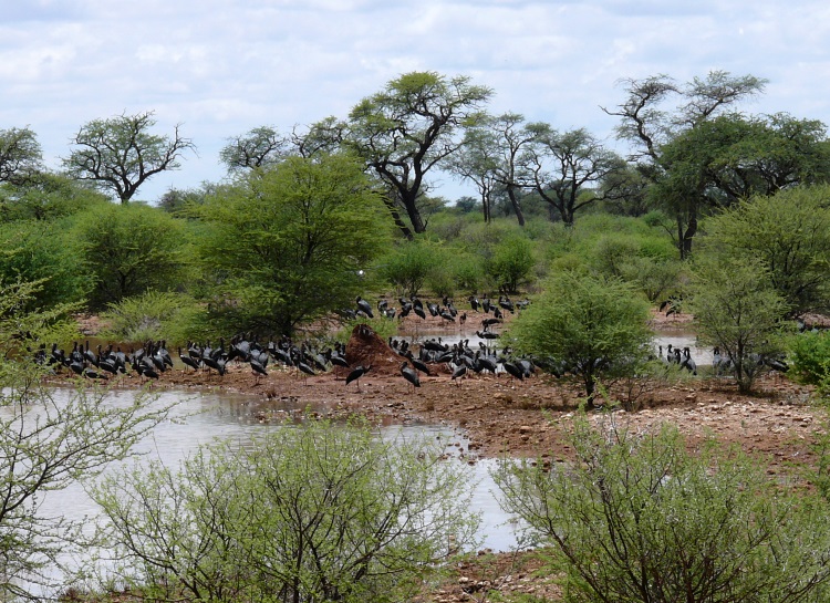 Das Wasserloch und dessen Umgebung bieten Lebensraum für Unmengen an Vögeln.