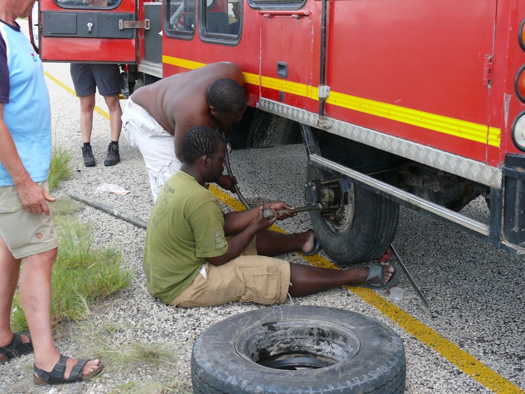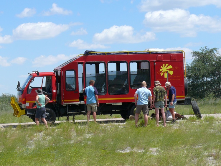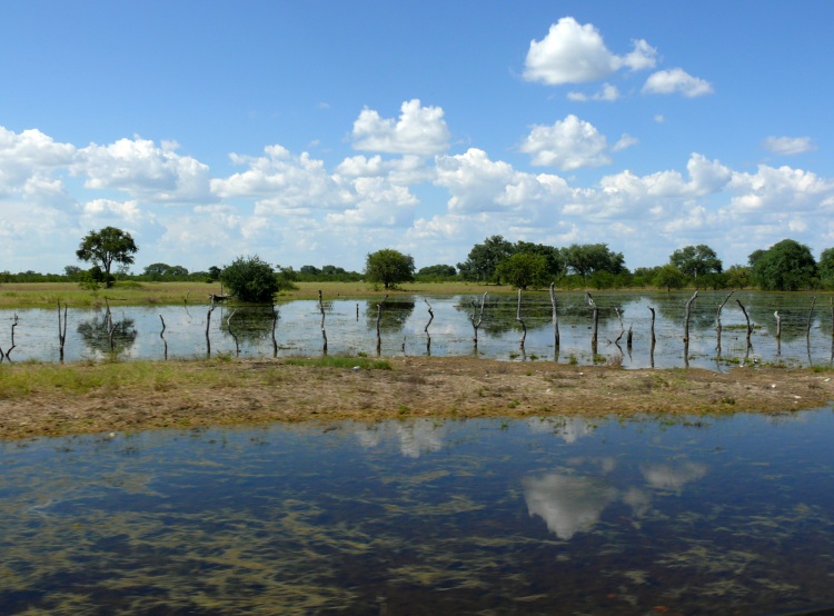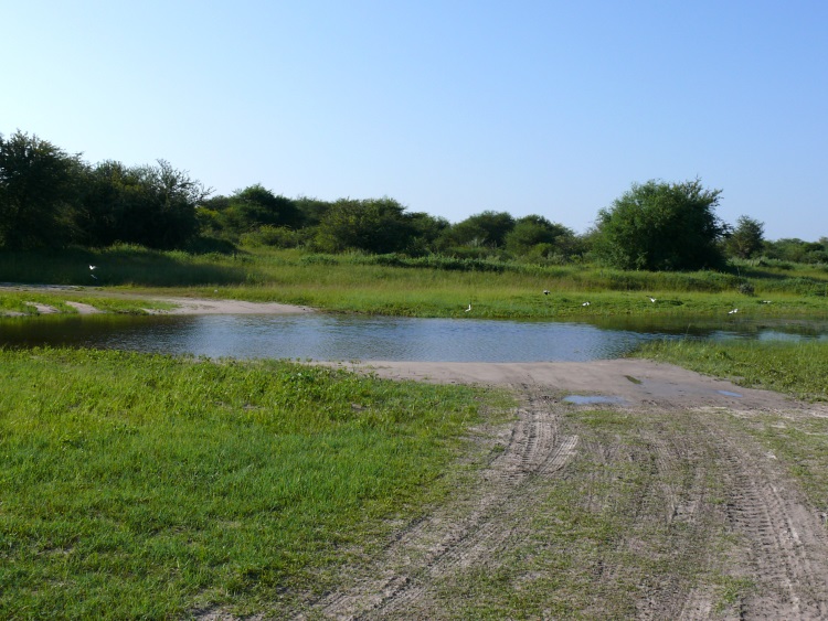Maun ist diesmal schnell erreicht und wir steigen wieder um in unser feuerrotes Expeditionsfahrzeug. Das nächste Etappenziel ist eigentlich die Makgadikgadi-Salzpfanne. Da die dortigen Straßen wegen des hohen Wasserstandes nicht befahrbar sind, müssen wir diesen Ausflug leider komplett streichen und wir werden lediglich in der Nähe von NAta übernachten.