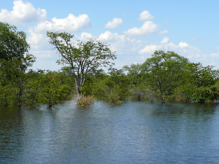 Durch die ergiebigen Regenfälle überflutetes Gelände