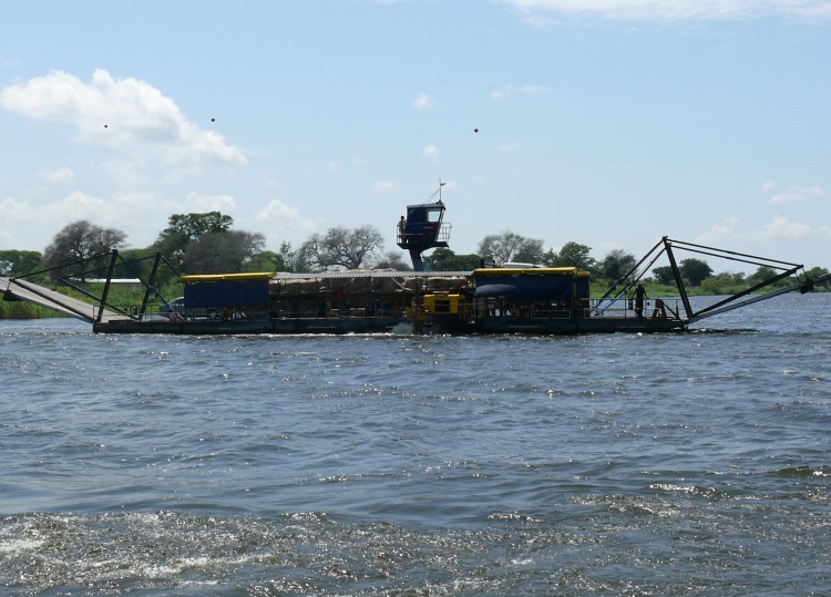 Erstaunlicherweise werden wir ohne große Wartezeit auf die Fähre, die nicht unbedingt einen verlässlichen Eindruck macht, aber ihren Job doch ordentlich erledigt, bugsiert. Schnell befinden wir uns schon auf der Flussmitte