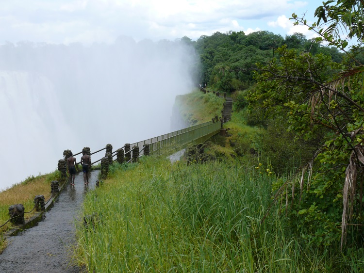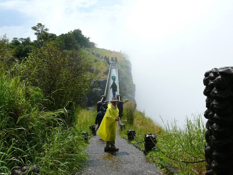 Auf dem Wanderpfad, der entlang des Sambesis führt. Die Gischt der Waserfälle lässt es ratsam erscheinen, passende Schutzkleidung anzuziehen.