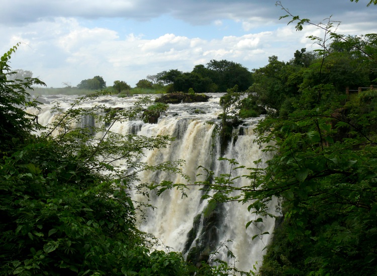 Vom Oberlauf aus zeugt die mächtige Gischt von der Wucht der Wasserfälle.