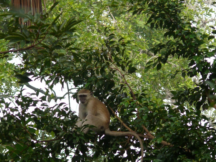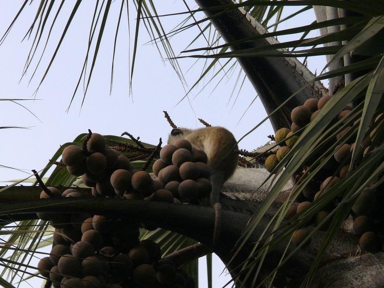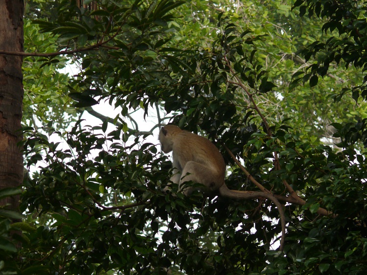 Äffchen am Campingplatz. Nachts hatte hier ein morscher Baum nachgegeben. Zum Glück wurde kein Zelt getroffen.