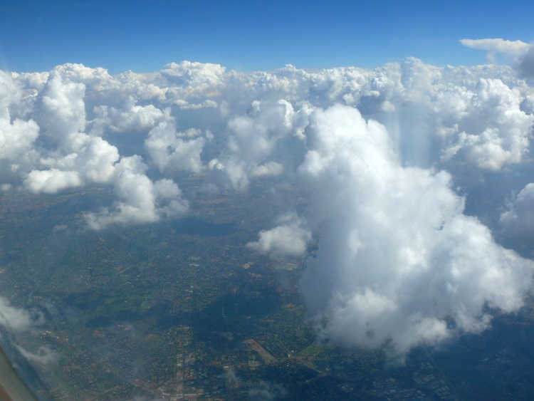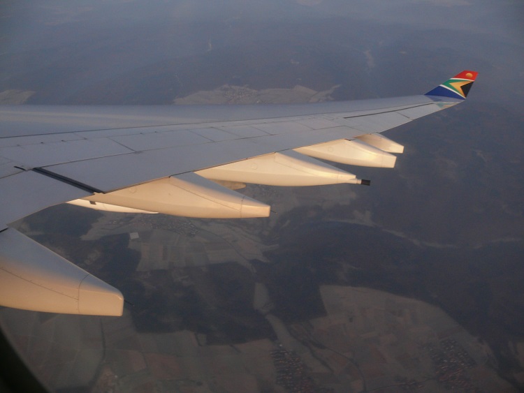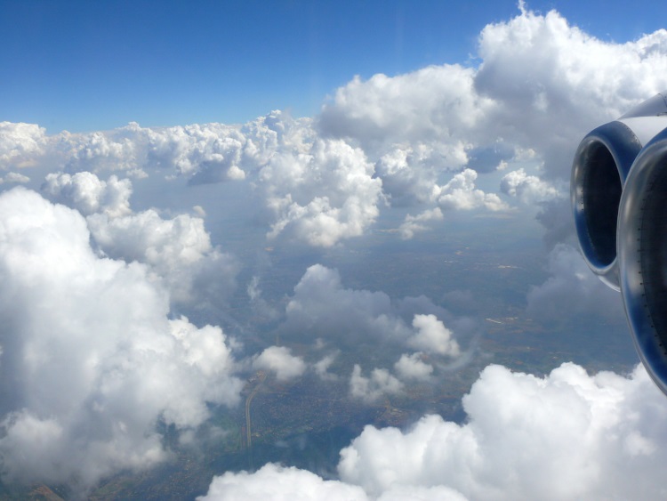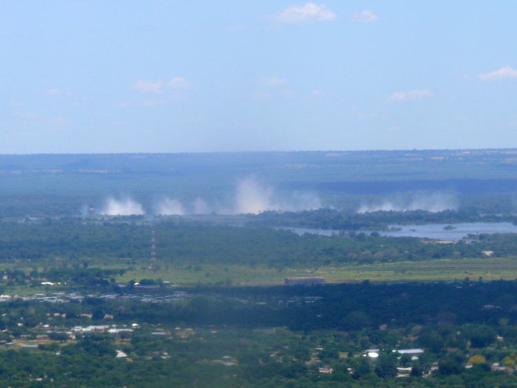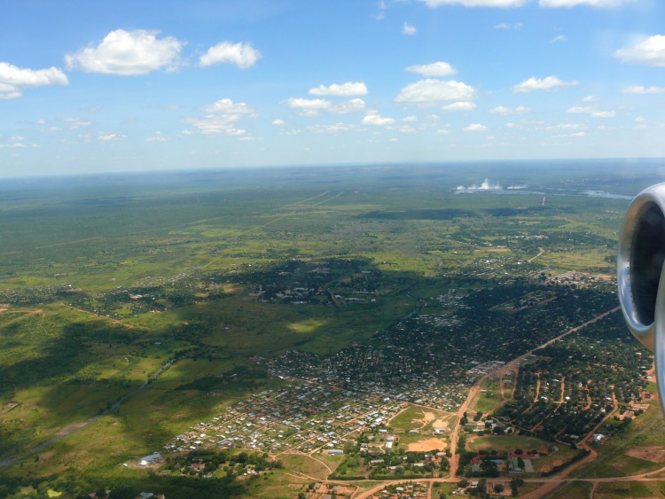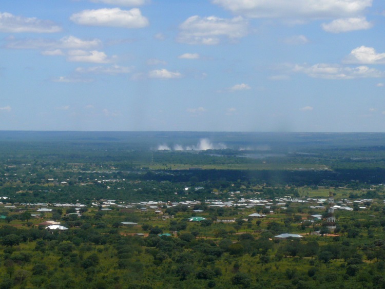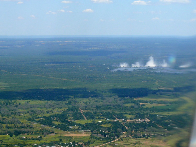 Vom Flugzeug aus werfen wir einen letzten Blick auf die Victoriafälle.