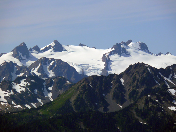 Blick zum Mount Angeles (links, 1967 m), rechts der Rocky Peak