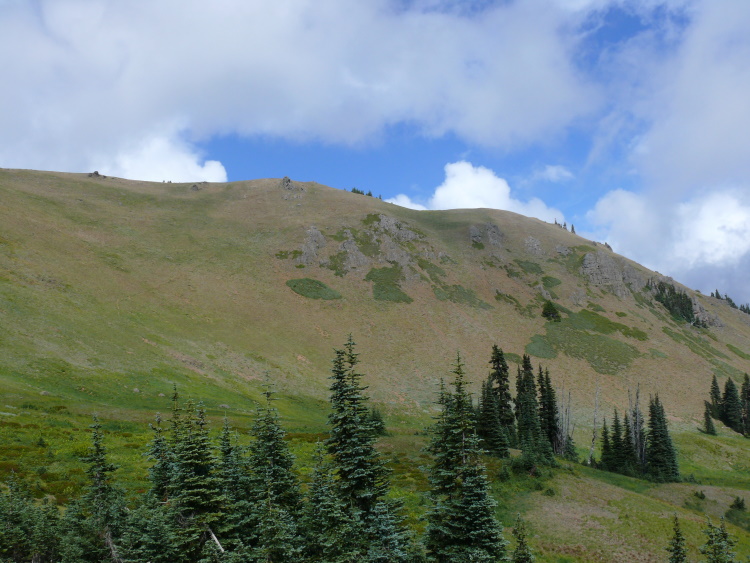 Blick nach Osten auf den Hurricane Ridge; in der Bildmitte hinten befindt sich der Rocky Peak