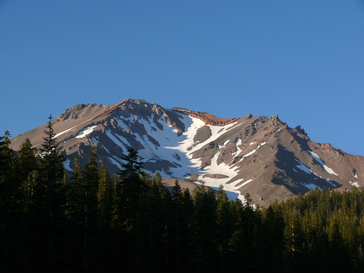 Mt. Shasta mit dem Avalanche Gulch und den markanten Red Banks, einer Steilstelle beim Erklimmen des Gipfels vom Süden.