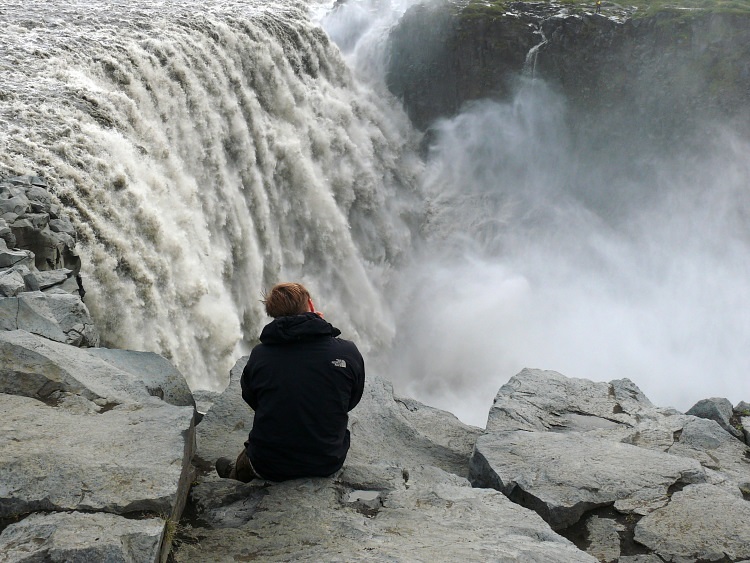 Der Dettifoss ist von beiden Seiten besuchbar. Die eine Seite hat die höhere Warte, die andere die direkte Berührung mit den herabstürzenden Wassern.