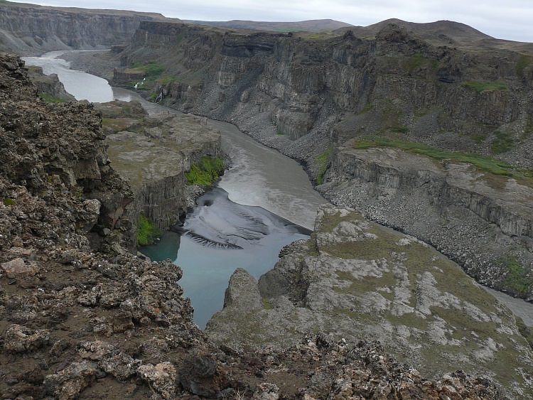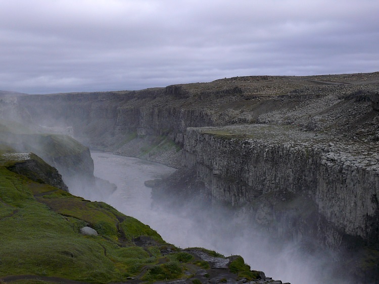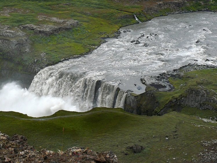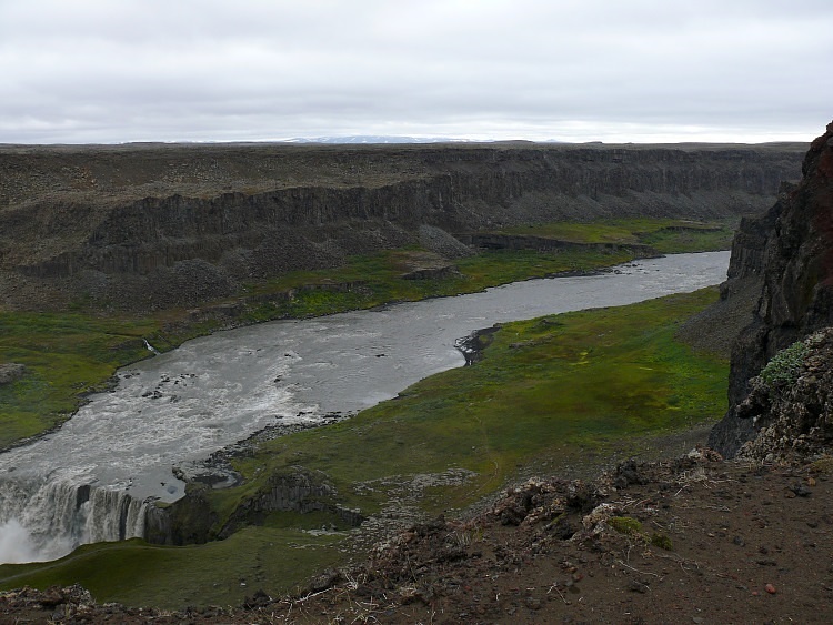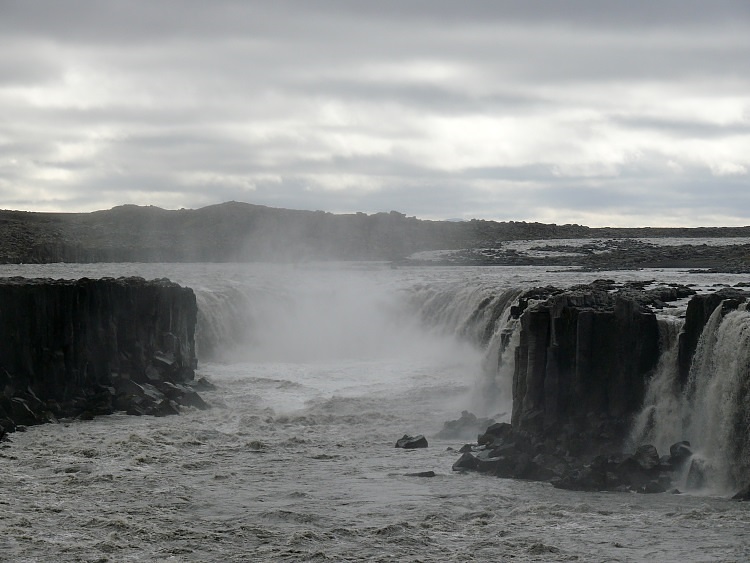 Gestern hatten wir das linke Ufer des Dettifoss bewundert. Heute wollen wir dieses Erlebnis vertiefen, nähern uns aber dem Wasserfall von der anderen Seite. Von hier aus werden wir auch später den zweiten Wasserfall, des Sellfoss, erwandern.