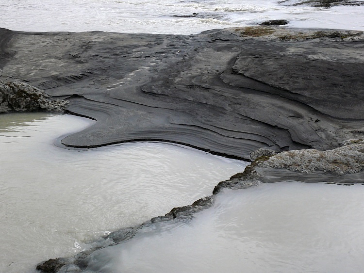 Basalt, zu schwarzem Sand zerrieben, bildet schwarze Sandstrände aus.