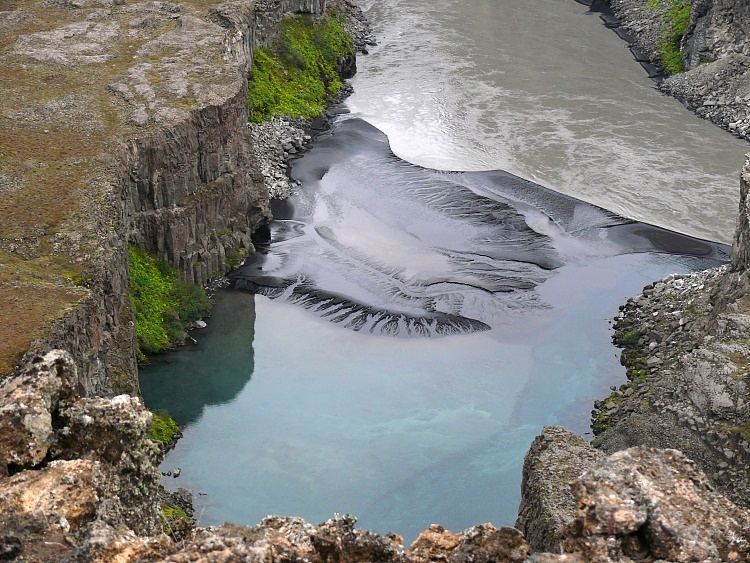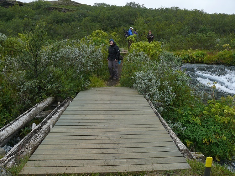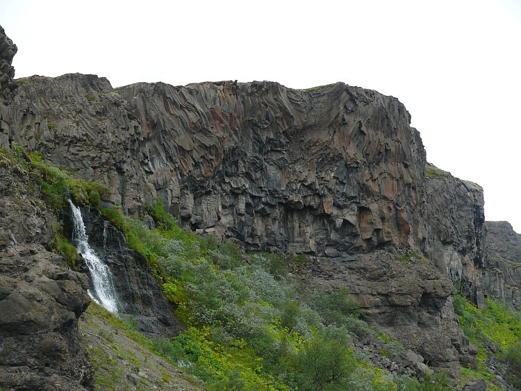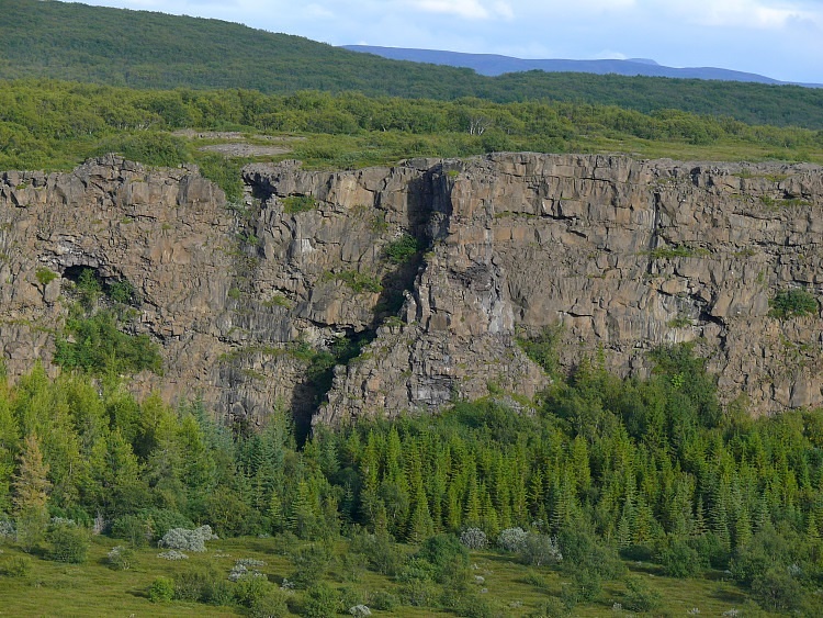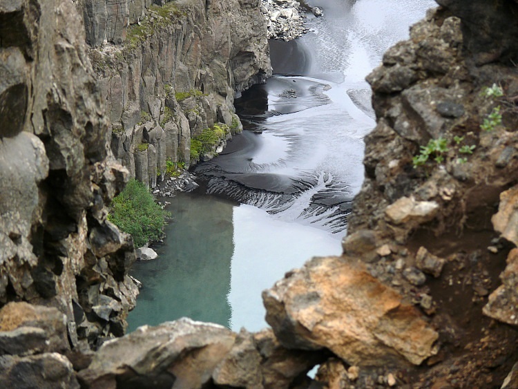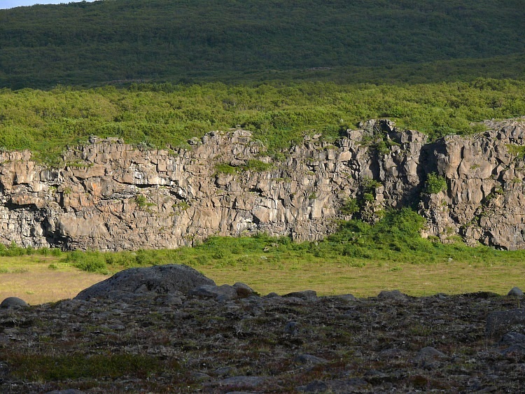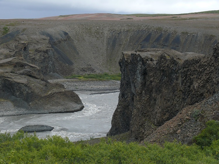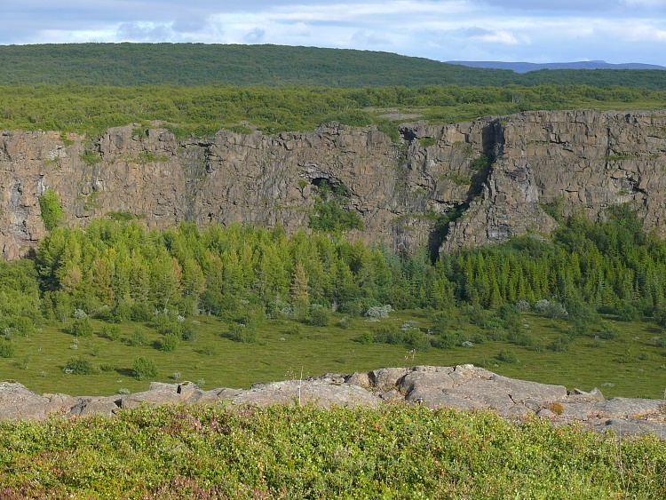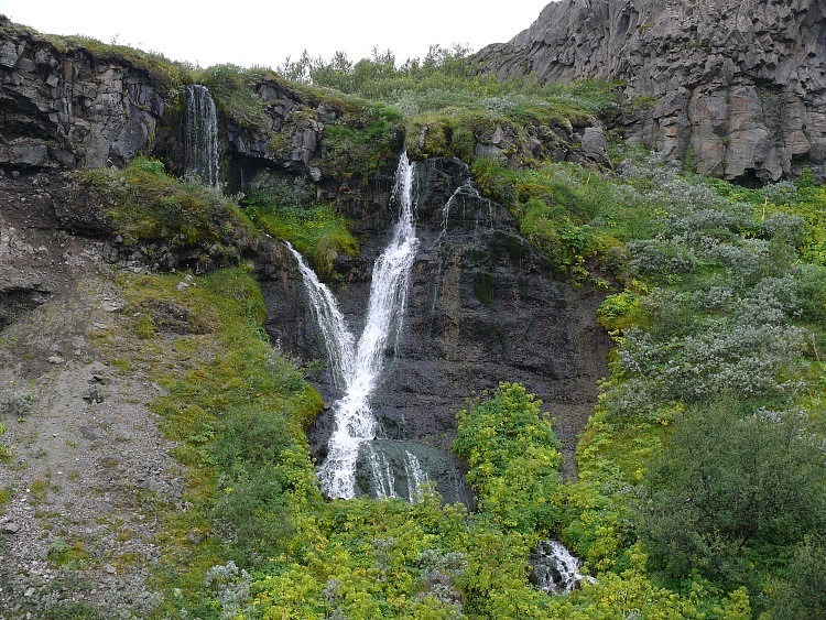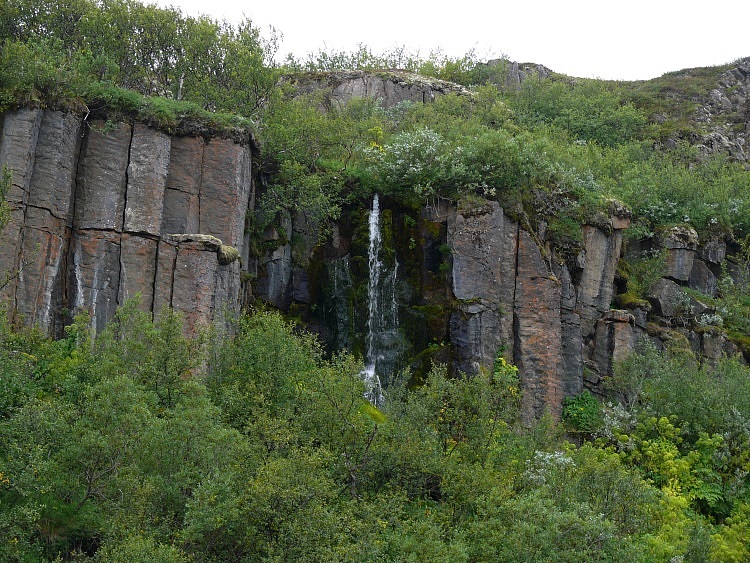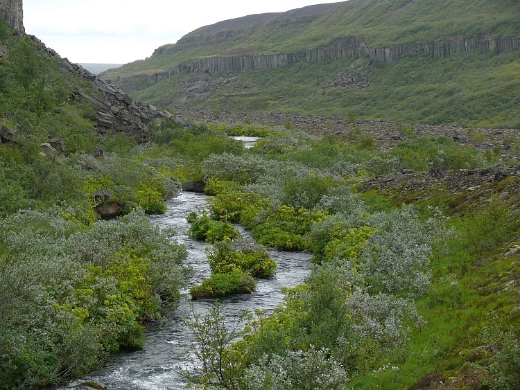 Der Schluchtboden enthält ein für isländische Verhältnisse seltenes Wäldchen.