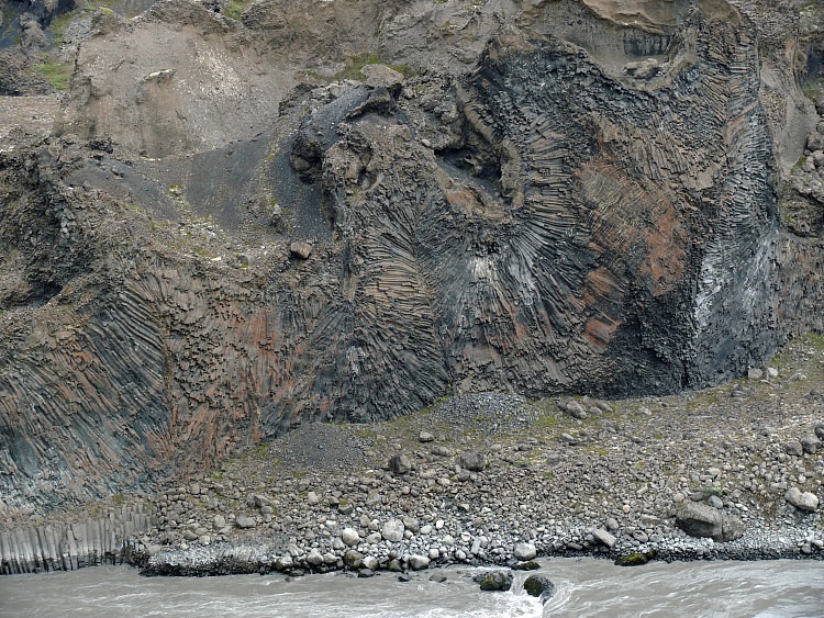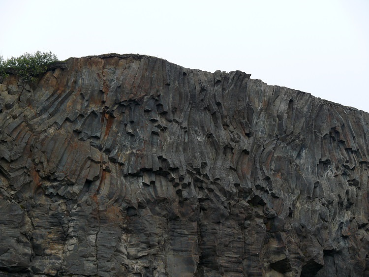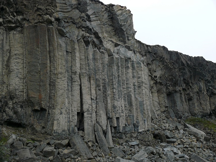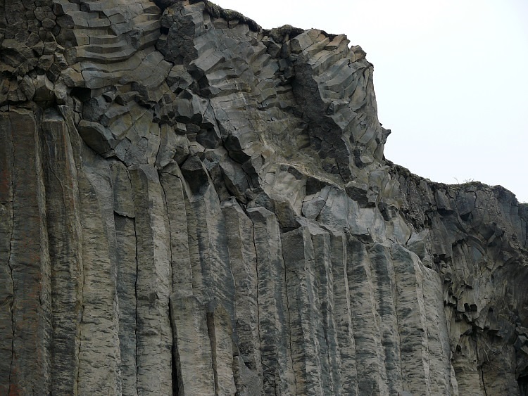 Basaltsäulen aus verschiedenen Ausbrüchen mit einer klaren Trennung dfer einzelnen Lagen.