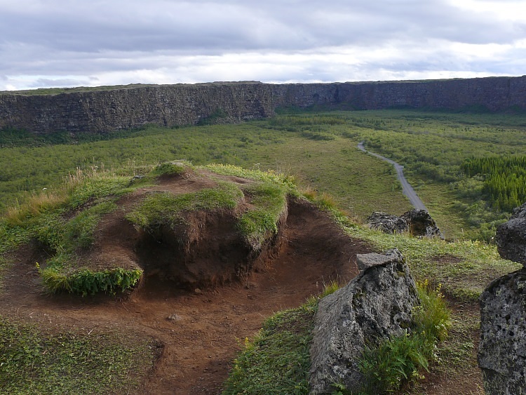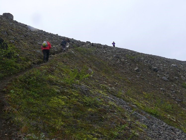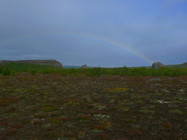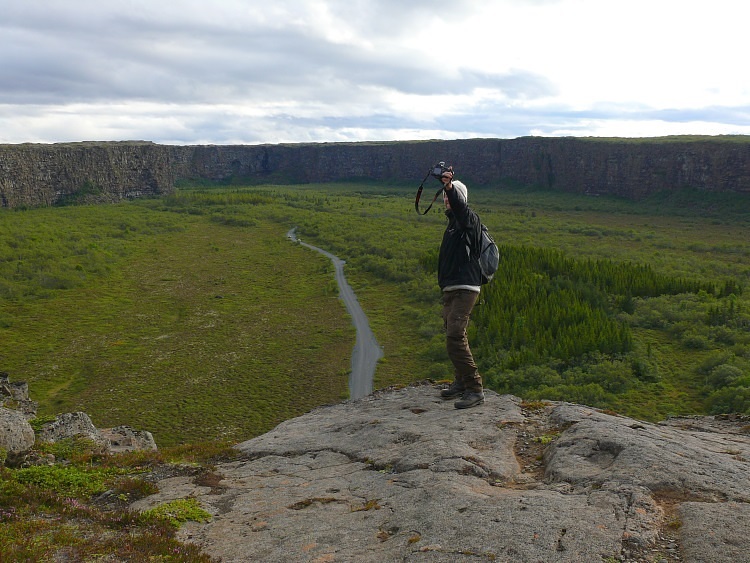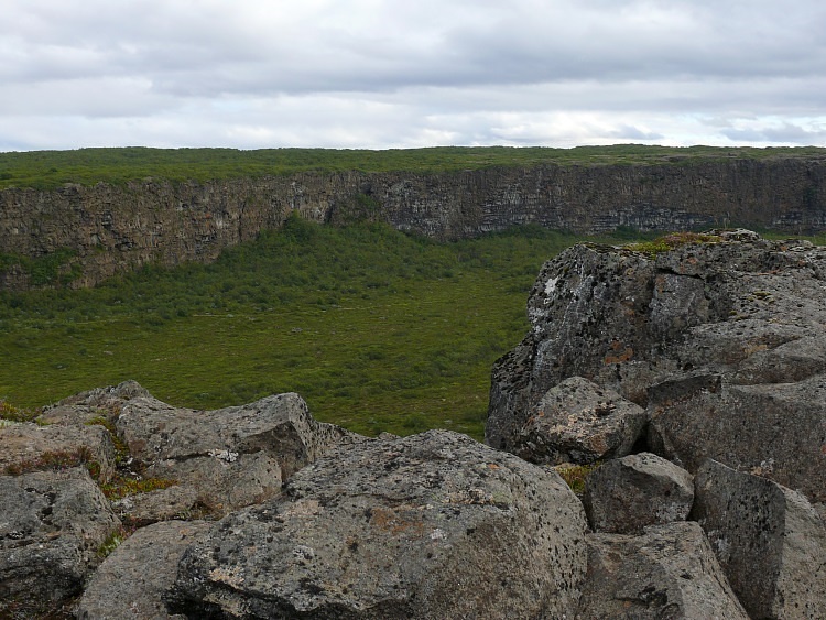 Wir besteigen den Höhenrücken, der in die Schlucht Ásbyrgi hineinragt.