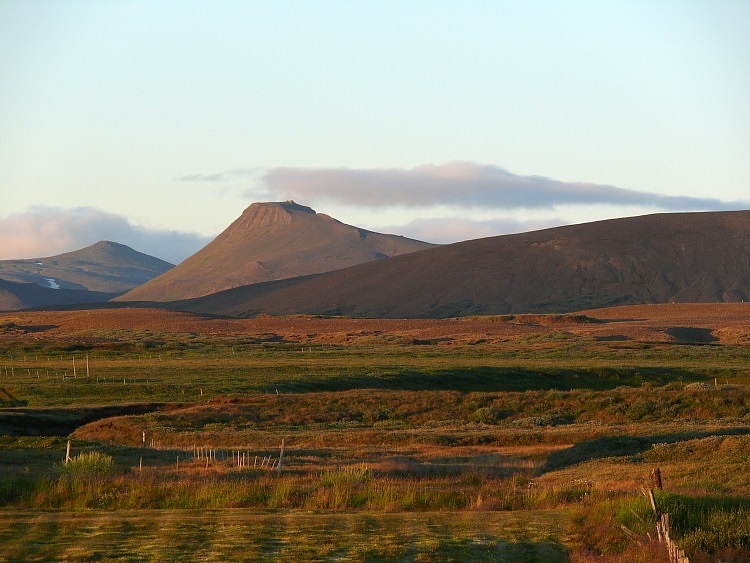 Der auffällige "breitschultige" Herðubreið, ein Tafelvulkan mit 1682 m Höhe, ist heute Morgen in all seiner Pracht und mit einer unberührten Schneehaube bedeckt zu sehen.