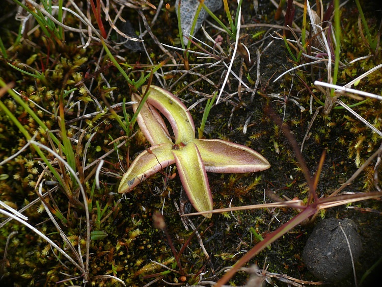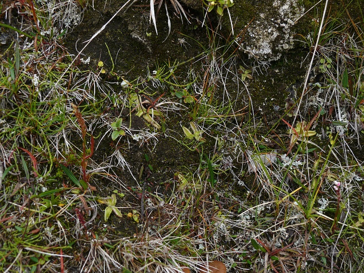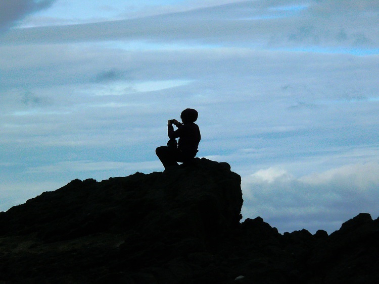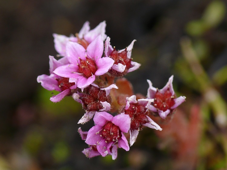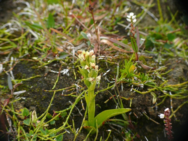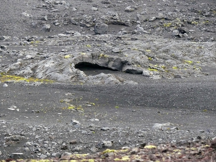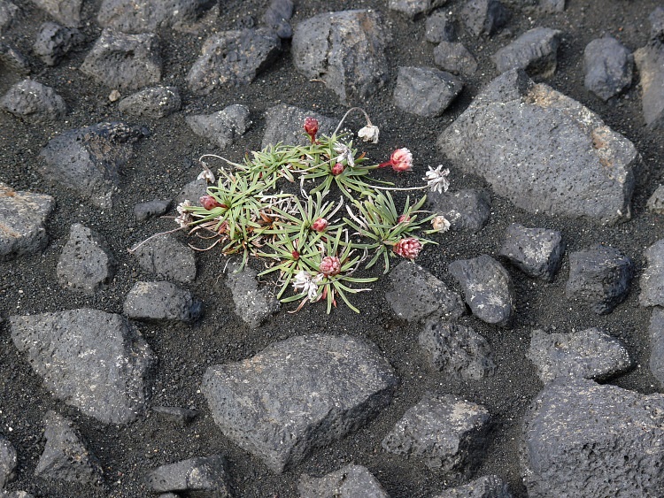 Kleine Farbtupfer im Schwarz-Weiß des Vulkangesteins.
